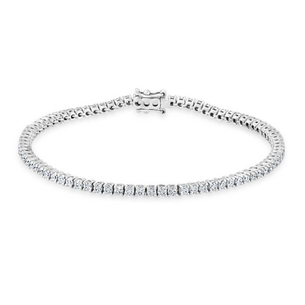 A refined statement of elegance, this 18ct white gold line bracelet features 80 round brilliant-cut diamonds, each set in a secure four-claw setting for maximum sparkle. With a total diamond weight of 2.56 carats, graded F/G colour and SI clarity, this piece offers exceptional brilliance and sophistication. Perfect for any occasion, this bracelet combines timeless design with superior craftsmanship, making it an ideal gift or a luxurious addition to your collection.