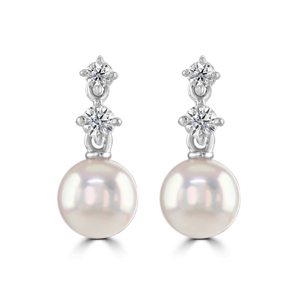 18ct White Gold Akoya Cultured Pearl and Diamond Drop Morning Dew Earrings