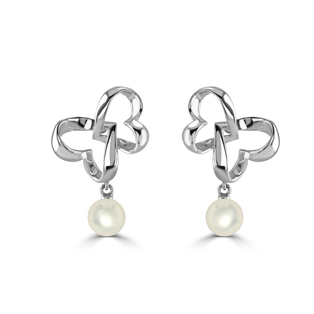 18ct White Gold Akoya Cultured Pearl Heart Earrings