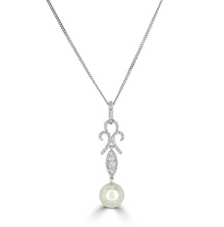 18ct White Gold Akoya Cultured Pearl and Diamond Pendant