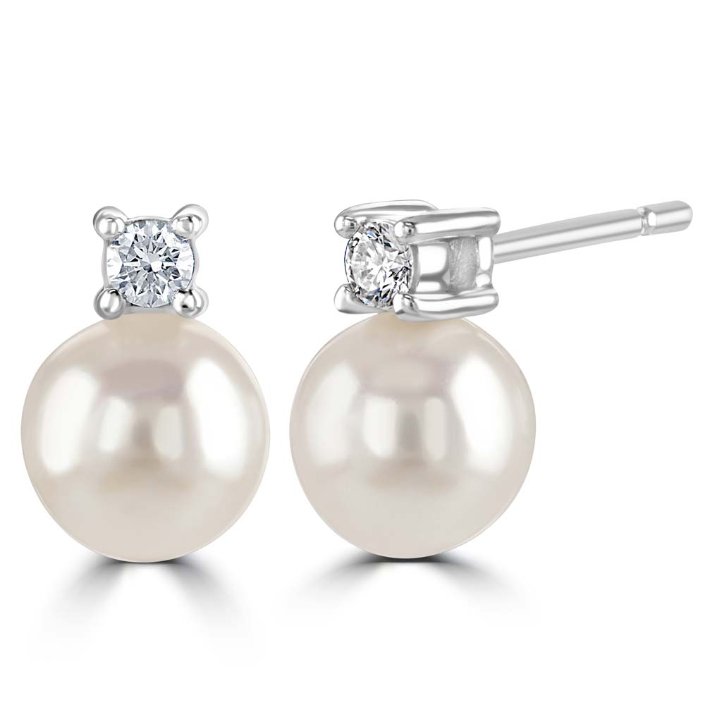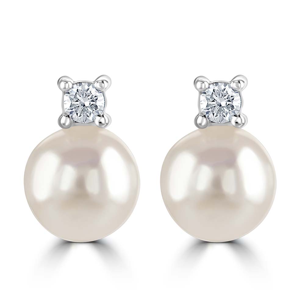 18ct White Gold Akoya Cultured Pearl and Diamond Earrings