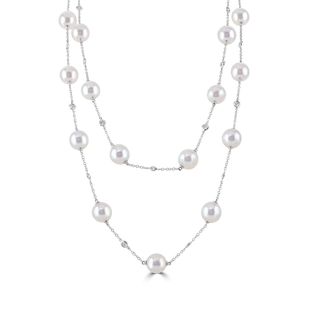 18ct White Gold Akoya Pearl and Diamond Necklace