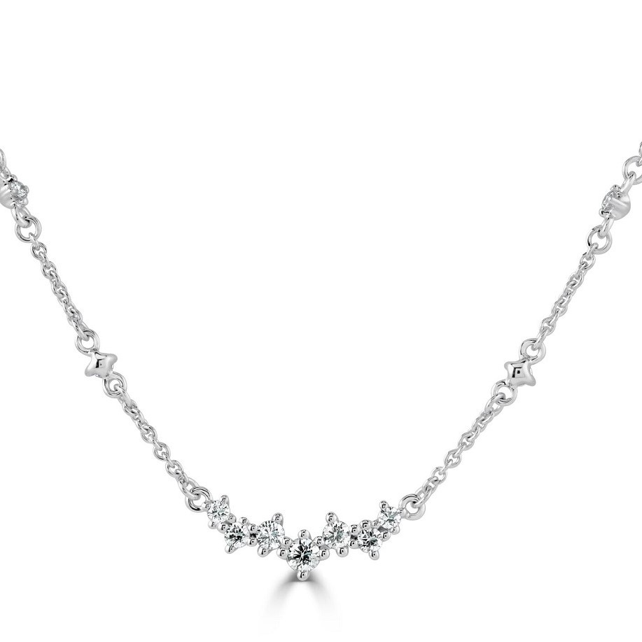 Enhance your jewellery collection with our exquisite 18ct White Gold Anchor Chain Necklace. Elegantly crafted, this 18-inch necklace, adjustable to 17 inches for a perfect fit, features a stunning array of nine round brilliant cut diamonds. The centrepiece displays seven diamonds arranged in a delicate zigzag pattern, flanked by two beautifully spaced diamonds for a symmetrical allure. With a total diamond weight of 0.22ct, each diamond is meticulously claw-set, showcasing sparkle from every angle. Ideal for adding a touch of sophistication to any outfit, this necklace is a timeless piece.