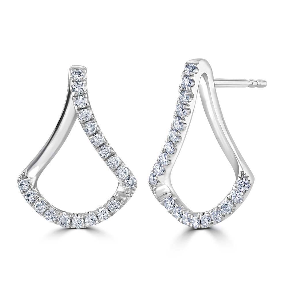 A stunning pair of 18ct white gold drop earrings, each designed with a charming bell shape that delicately dangles to capture attention. These earrings are grain set with round brilliant cut diamonds, totalling 0.30 carats, ensuring a sparkling allure that enhances any attire. The intricate grain setting securely holds each diamond, distributing light beautifully across the bell-shaped surface for an eye-catching shimmer. The design is complemented by post and butterfly fittings, providing a secure and comfortable wear, perfect for all-day elegance or special evenings out. Crafted from lustrous 18ct white gold, these drop earrings combine durability with a polished aesthetic that stands out magnificently against any skin tone. Whether it’s a gift for a loved one or a treat for yourself, these diamond bell-shaped earrings are a timeless addition to any jewelry collection, offering sophistication and a hint of playfulness.