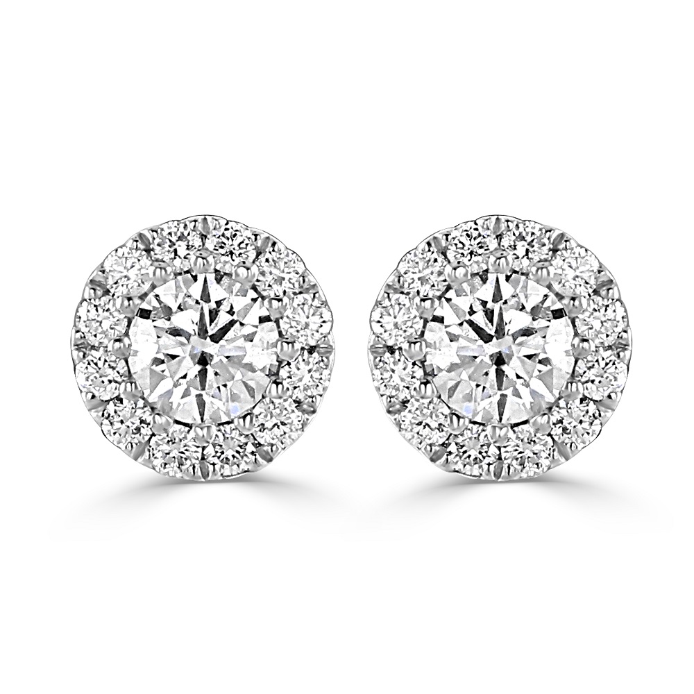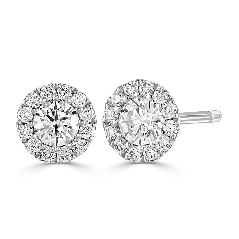 A stunning pair of 18ct white gold cluster stud earrings, designed to add a radiant touch of luxury to your style. At the heart of each earring lies a captivating round brilliant cut diamond, weighing 0.34 carats, encircled by twelve smaller round brilliant cut diamonds totalling 0.16 carats. These carefully arranged diamonds create a dazzling halo effect that enhances the central stone's brilliance and depth. Crafted in sleek 18ct white gold, these earrings feature secure post and butterfly fittings, ensuring they remain comfortably in place. Perfect for special occasions or adding a sophisticated sparkle to everyday wear, these cluster stud earrings are a timeless addition to any jewellery collection, promising to attract admiration and elevate any ensemble.