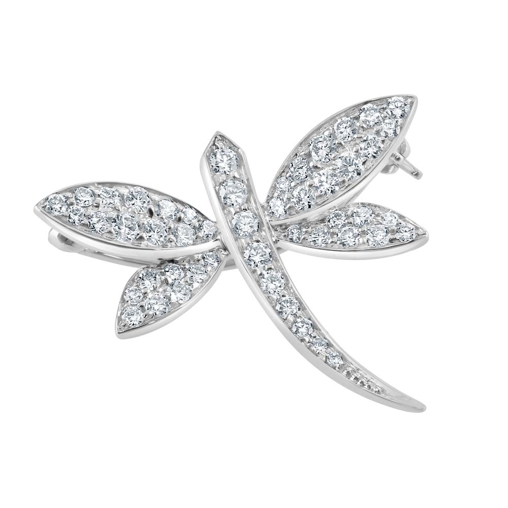 Elevate your jewellery collection with our captivating 18ct white gold Dragonfly brooch, a symbol of refinement and grace. Meticulously set with round brilliant cut diamonds that sparkle with every movement, this brooch boasts a total diamond weight of 0.65ct. Crafted for those who appreciate the beauty of intricate design and luxurious materials, this piece promises to be a standout addition to any outfit, embodying elegance and timeless sophistication.