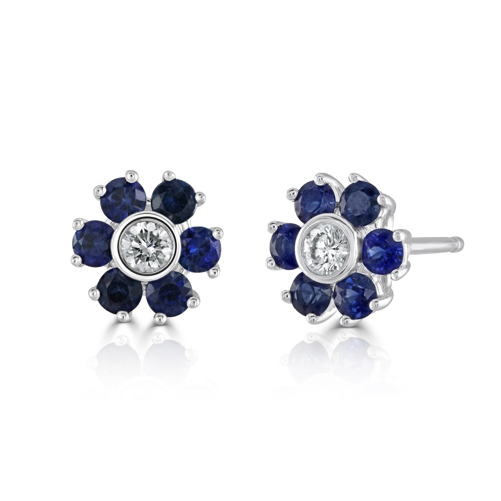18ct White Gold Sapphire and Diamond Flower Earrings