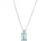 An elegant 18ct white gold pendant featuring an emerald cut aquamarine, exquisitely held in a four-claw setting. This breathtaking gemstone, weighing 0.80ct, boasts a captivating blue hue that evokes the serene beauty of the ocean's depths. Positioned above the aquamarine is a rubover set round brilliant cut diamond, adding a touch of sparkling sophistication to this exquisite piece. This pendant is beautifully presented on an 18ct white gold 17-inch trace chain, which is adjustable to 16 inches, offering versatility and comfort for the wearer. Whether you're dressing up for a special occasion or adding a touch of luxury to your everyday look, this aquamarine and diamond pendant is sure to make a statement.