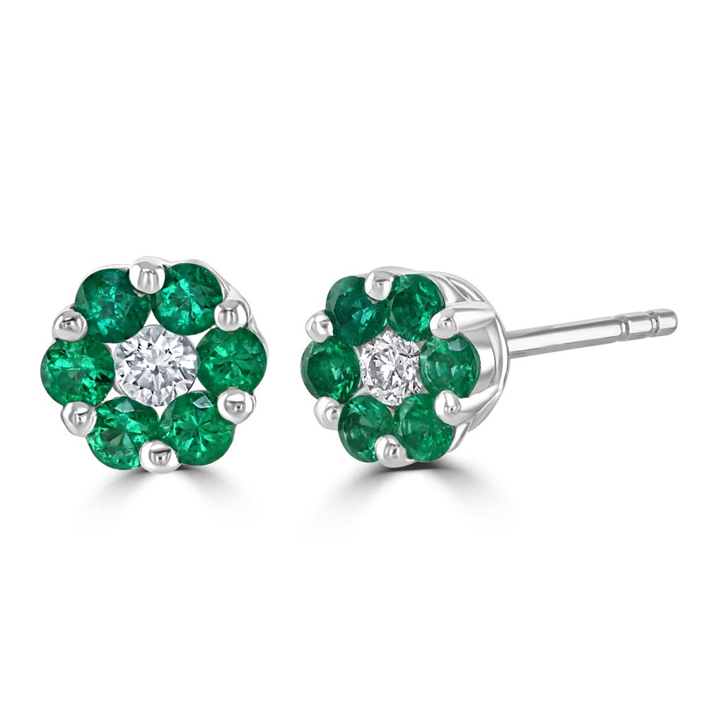 18ct White Gold Diamond and Emerald Cluster Earrings