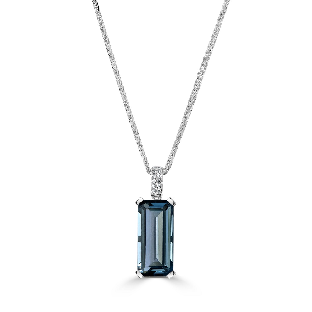 18ct White Gold London Blue Topaz and Diamond Pendant