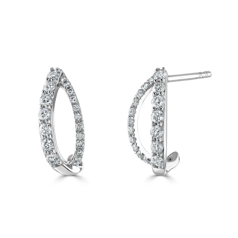 Our stunning 18ct white gold stud earrings are each designed in an elegant open marquise shape, delicately set with sparkling round brilliant cut diamonds. These sophisticated earrings boast a total diamond weight of 0.26ct, ensuring a radiant display that captures and reflects light from every angle. Crafted from luxurious 18ct white gold, the unique marquise silhouette offers a contemporary twist on classic stud earrings, making them a perfect choice for those who appreciate modern yet timeless jewellery designs. The use of round brilliant cut diamonds maximizes their brilliance, making these earrings a dazzling addition to any ensemble.