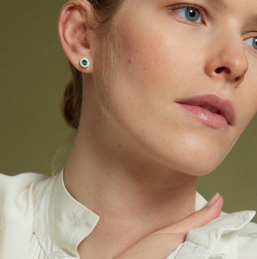 Crafted in lustrous 18ct white gold, these earrings offer a timeless and sophisticated setting that perfectly complements the brilliance of the diamonds and the depth of the emeralds. Ideal for those seeking to add a touch of glamour to their everyday wear or as a standout accessory for special occasions, these stud earrings are a testament to luxury and refined taste.