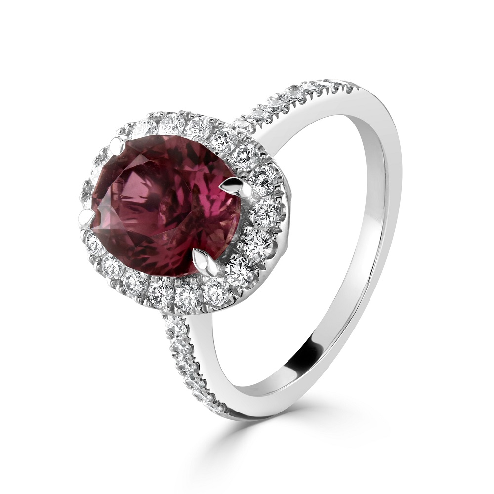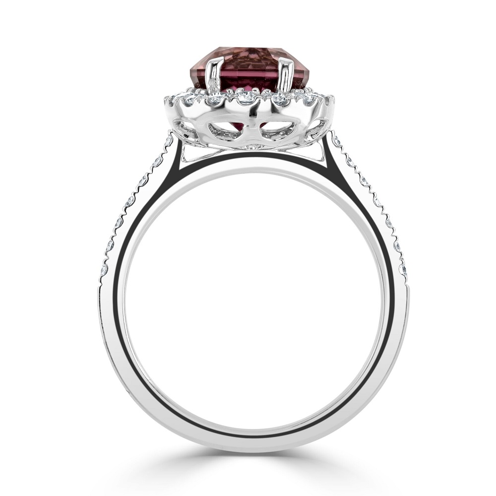 18ct White Gold Pink Tourmaline and Diamond Halo Engagement Ring
