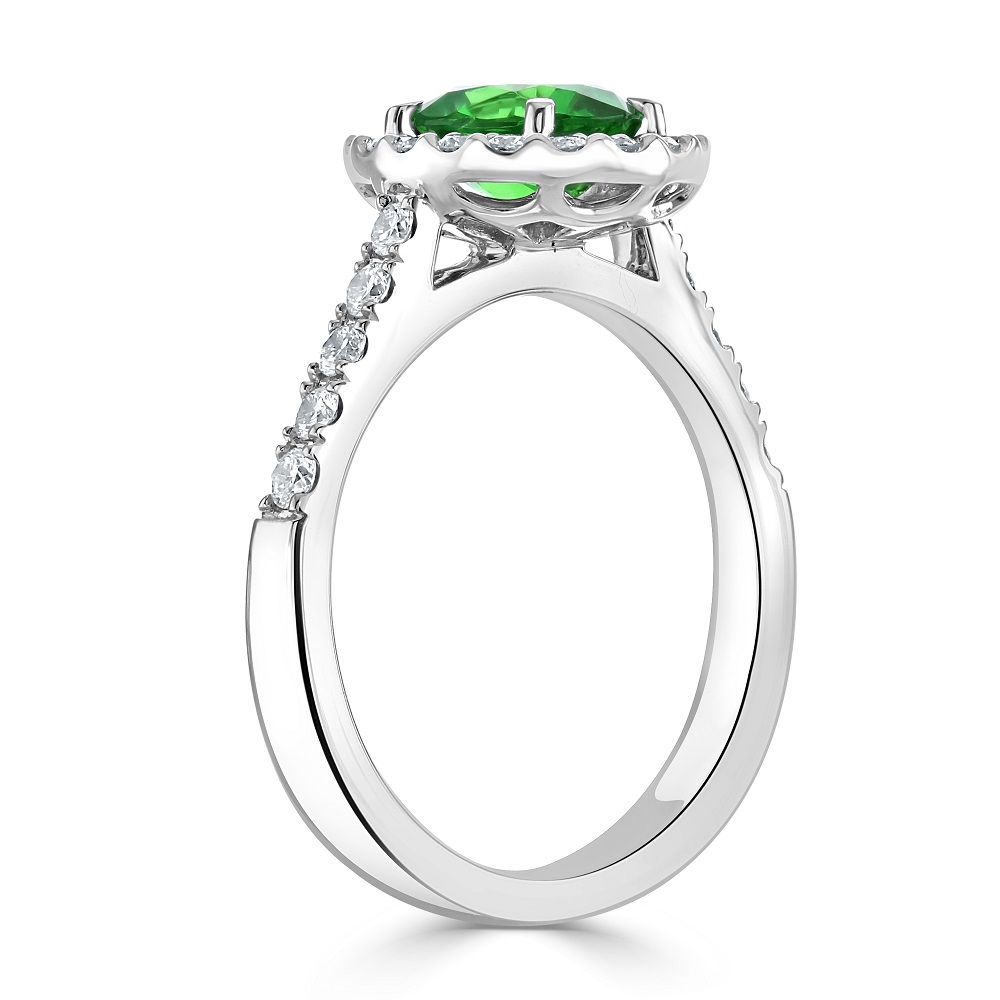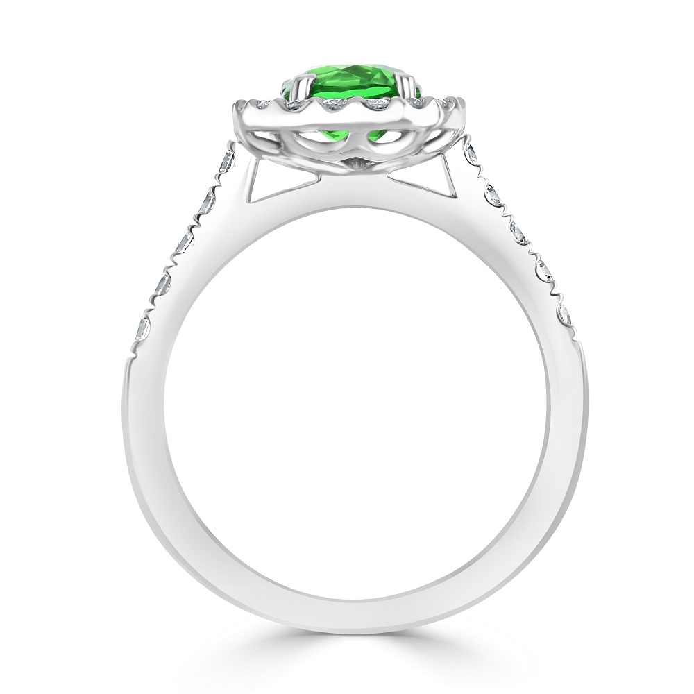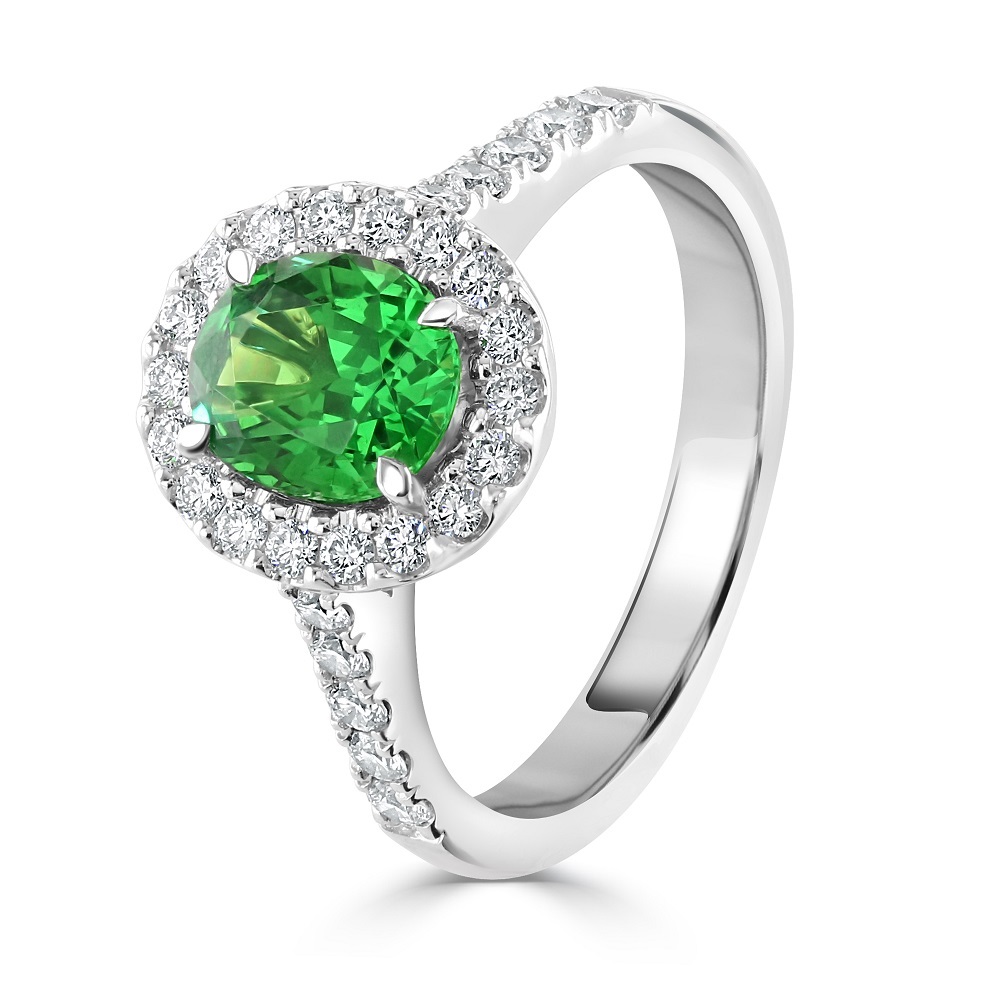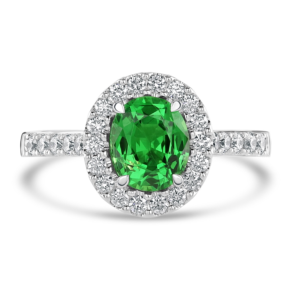 18ct White Gold Tsavorite and Diamond Halo Ring