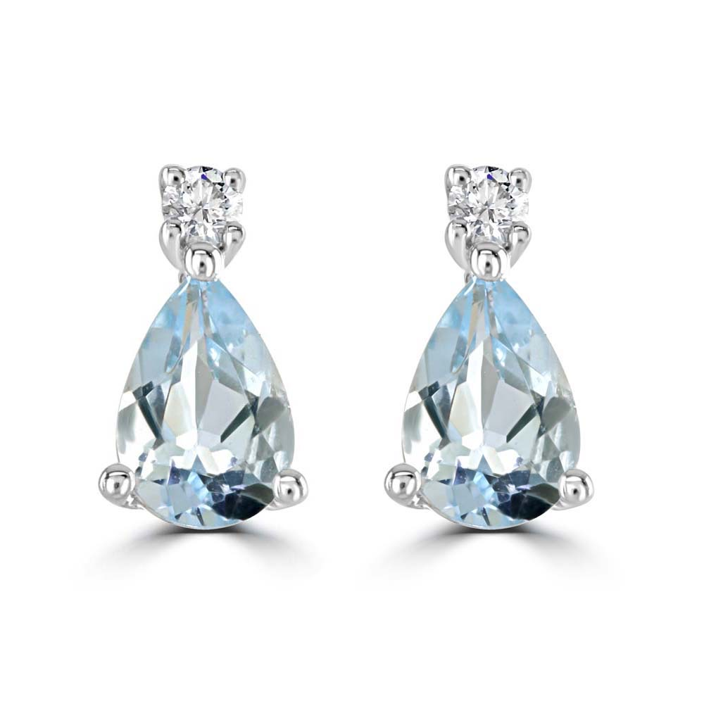 Add a touch of sophistication to your jewellery collection with these stunning 18ct white gold drop stud earrings. Each earring features a single round brilliant-cut diamond, securely set in a four-claw setting, adding a subtle sparkle. Below, a beautiful pear-cut aquamarine, set in a three-claw setting, dangles gracefully, showcasing its captivating blue hue. Designed with post and butterfly fittings, these earrings ensure a secure and comfortable fit. With a total aquamarine weight of 0.73ct and a total diamond weight of 0.05ct, these earrings combine the timeless elegance of diamonds with the serene beauty of aquamarine. Perfect for special occasions or everyday wear, they will add a touch of refined elegance to any ensemble.