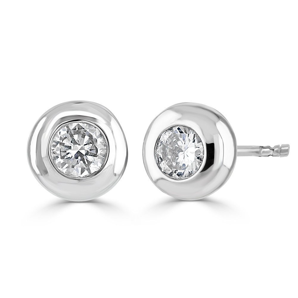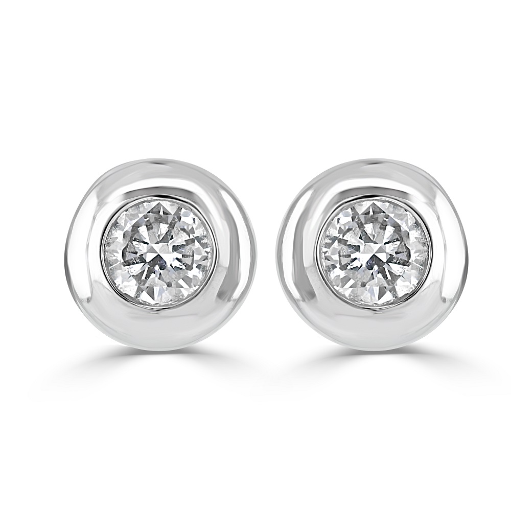 Discover the timeless elegance of our 18ct white gold stud earrings, each featuring a single round brilliant cut diamond, meticulously rubover set to showcase its dazzling brilliance. With a total diamond weight of 0.50 carats, these earrings radiate luxury and sophistication. The secure rubover setting not only enhances the diamond's natural beauty but also ensures that each gem is held firmly in place. Complemented by classic post and butterfly fittings, these earrings offer both style and comfort for all-day wear. Perfect for special occasions or adding a touch of glamour to your everyday look, these stud earrings are a must-have addition to any fine jewellery collection