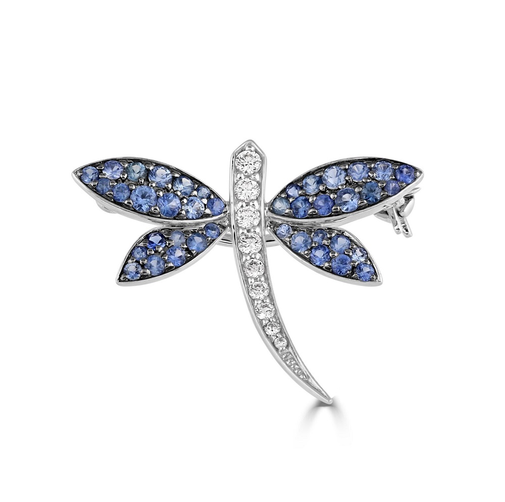 18ct White Gold Sapphire and Diamond Dragonfly Brooch
