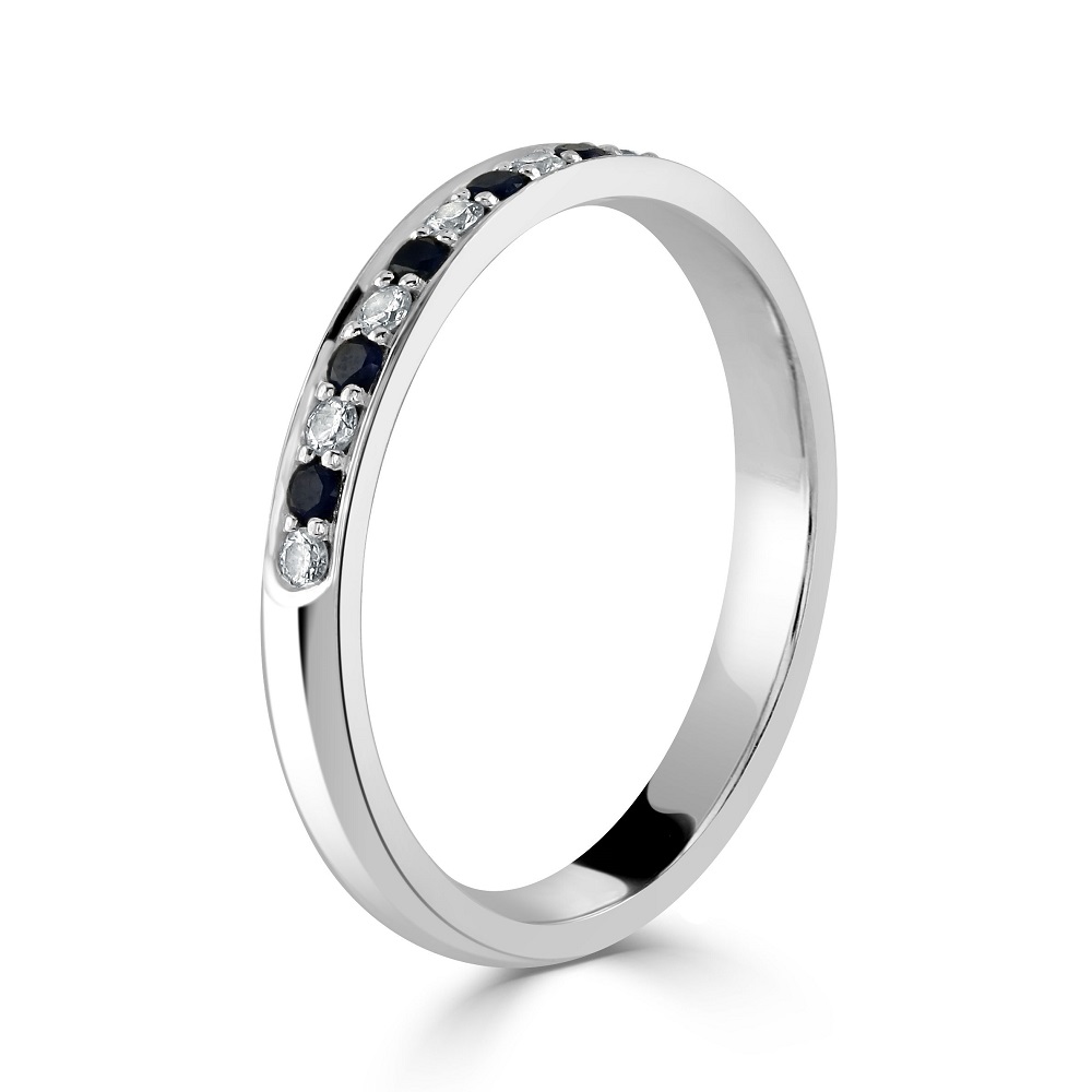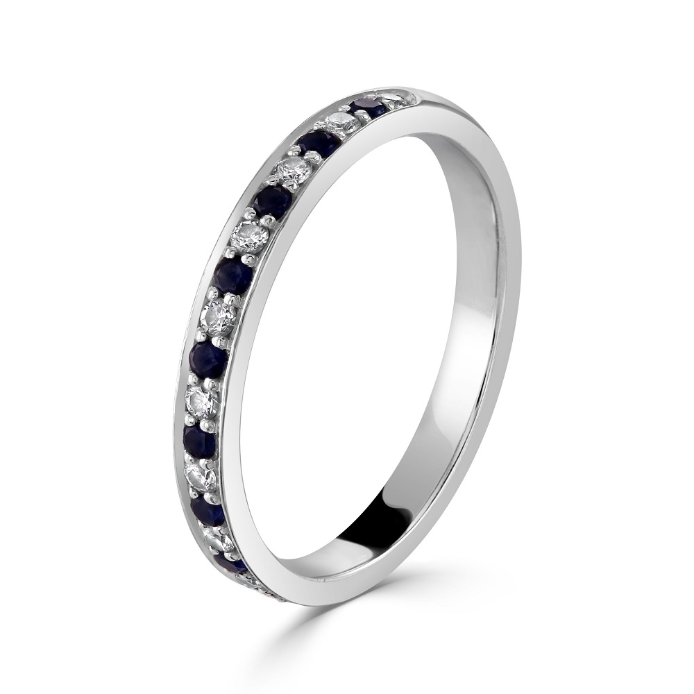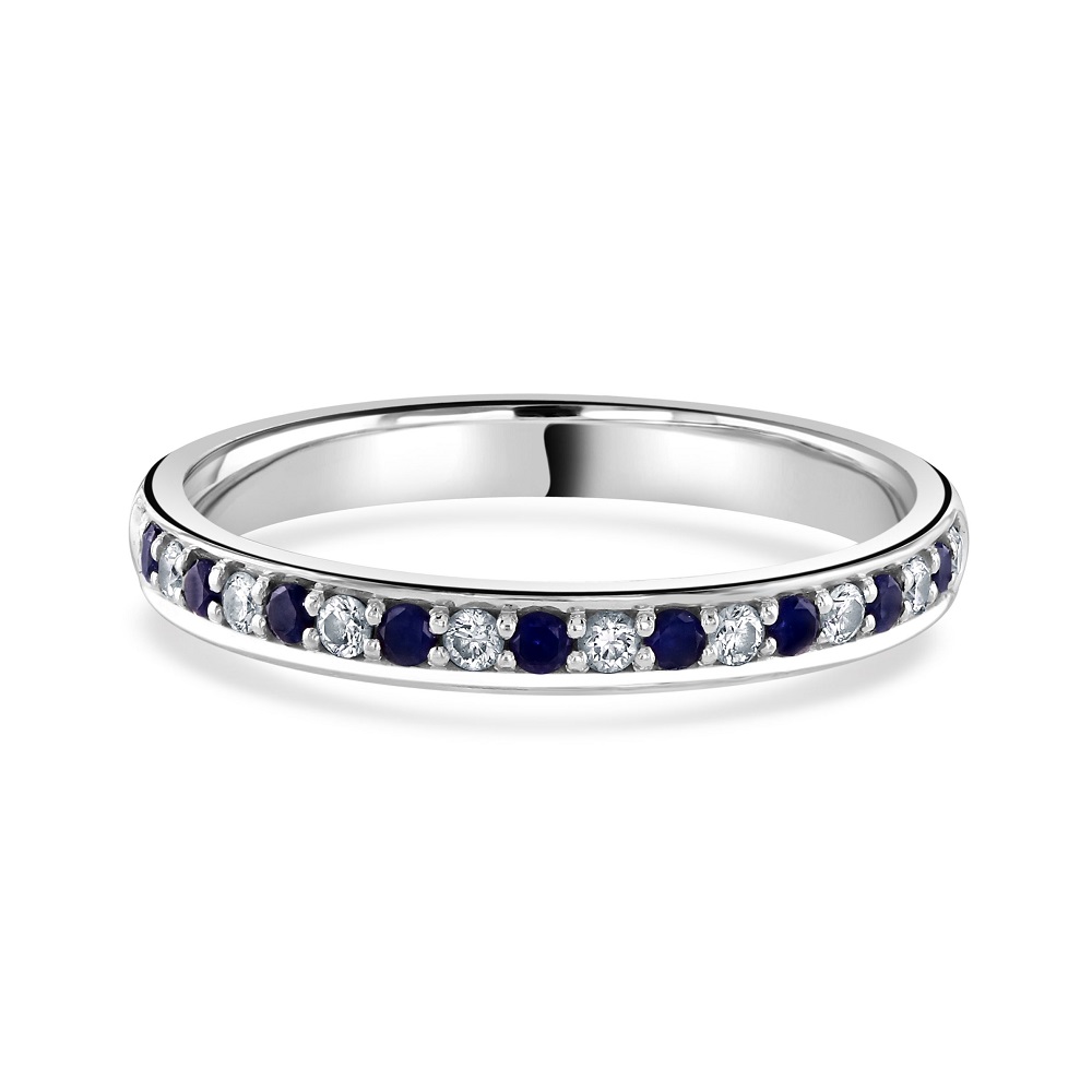 Our refined 18ct white gold eternity ring is beautifully crafted to symbolize everlasting elegance. This sophisticated ring is micro claw set with an alternating pattern of nine round sapphires and ten round brilliant cut diamonds, creating a seamless flow of colour and sparkle around the band.