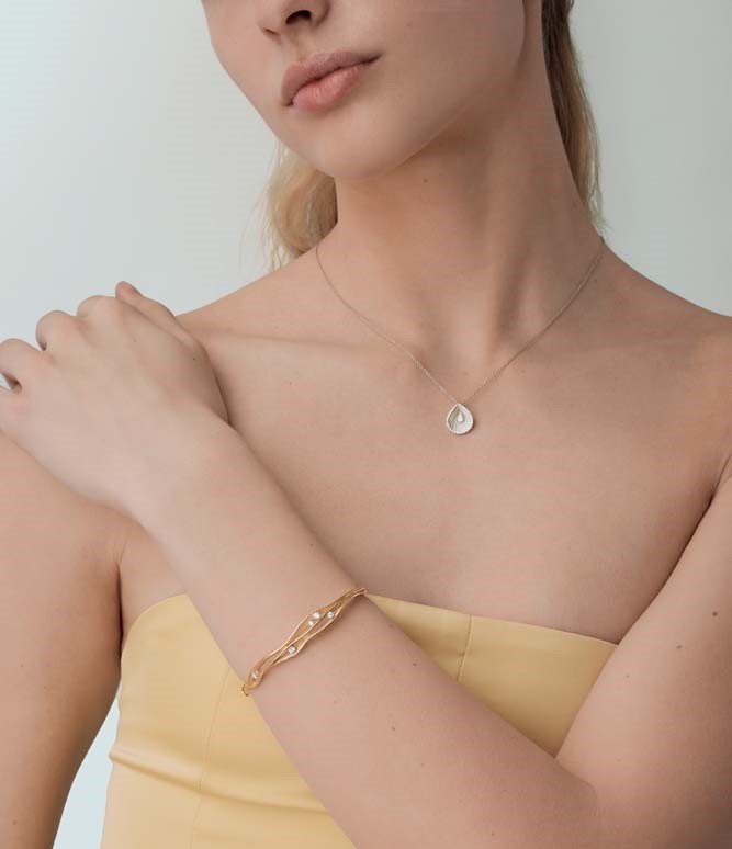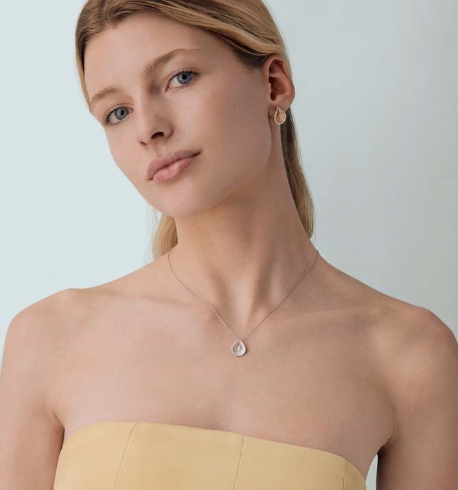 Small and delicate drop in 18kt gold embellished with a border of diamonds. The jewels of this series are easy to wear and adapt to any look. Elegant or casual, colorful or monochromatic: there is a Goccia for every taste!