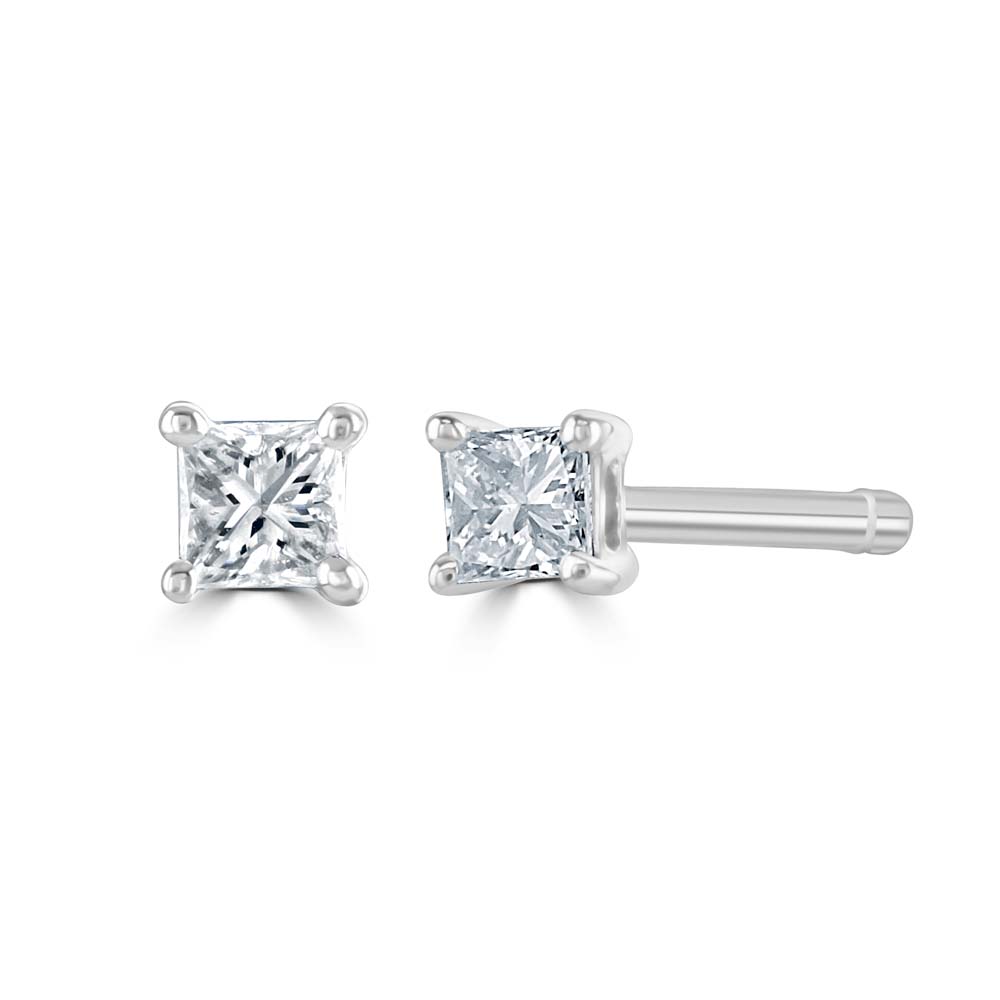 Elevate your elegance with our 18ct white gold single stone stud earrings, each exquisitely set with a princess cut diamond in a secure three-claw setting. Boasting a total diamond weight of 0.10ct, these earrings offer a refined sparkle and timeless charm. The lustrous white gold complements the brilliance of the diamonds, making these earrings perfect for any occasion. Featuring post and butterfly fittings, they provide both comfort and a secure fit for pierced ears. Enhance your jewellery collection with these sophisticated white gold diamond stud earrings, adding a touch of luxury to your everyday look.