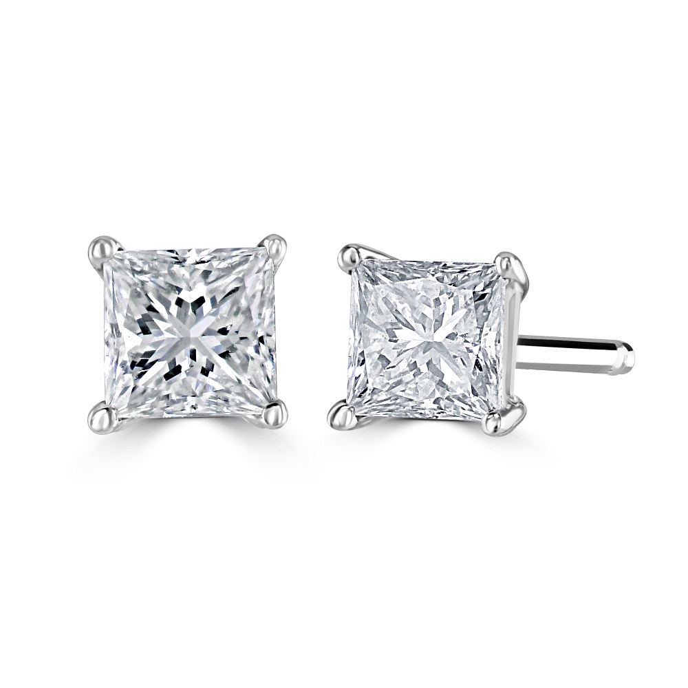 Enhance your jewellery collection with our exquisite 18ct white gold diamond stud earrings, featuring a beautifully faceted princess cut diamond in each earring. Set in a secure four-claw setting, these diamonds boast a total weight of 0.50 carats, ensuring a display of brilliant sparkle and sophisticated elegance. The modern princess cut enhances the diamond's natural radiance, making these earrings a perfect choice for those who appreciate contemporary style blended with timeless luxury. Ideal for day-to-night wear, these stud earrings will add a touch of glamour to any ensemble, making them a splendid gift or a cherished personal keepsake.