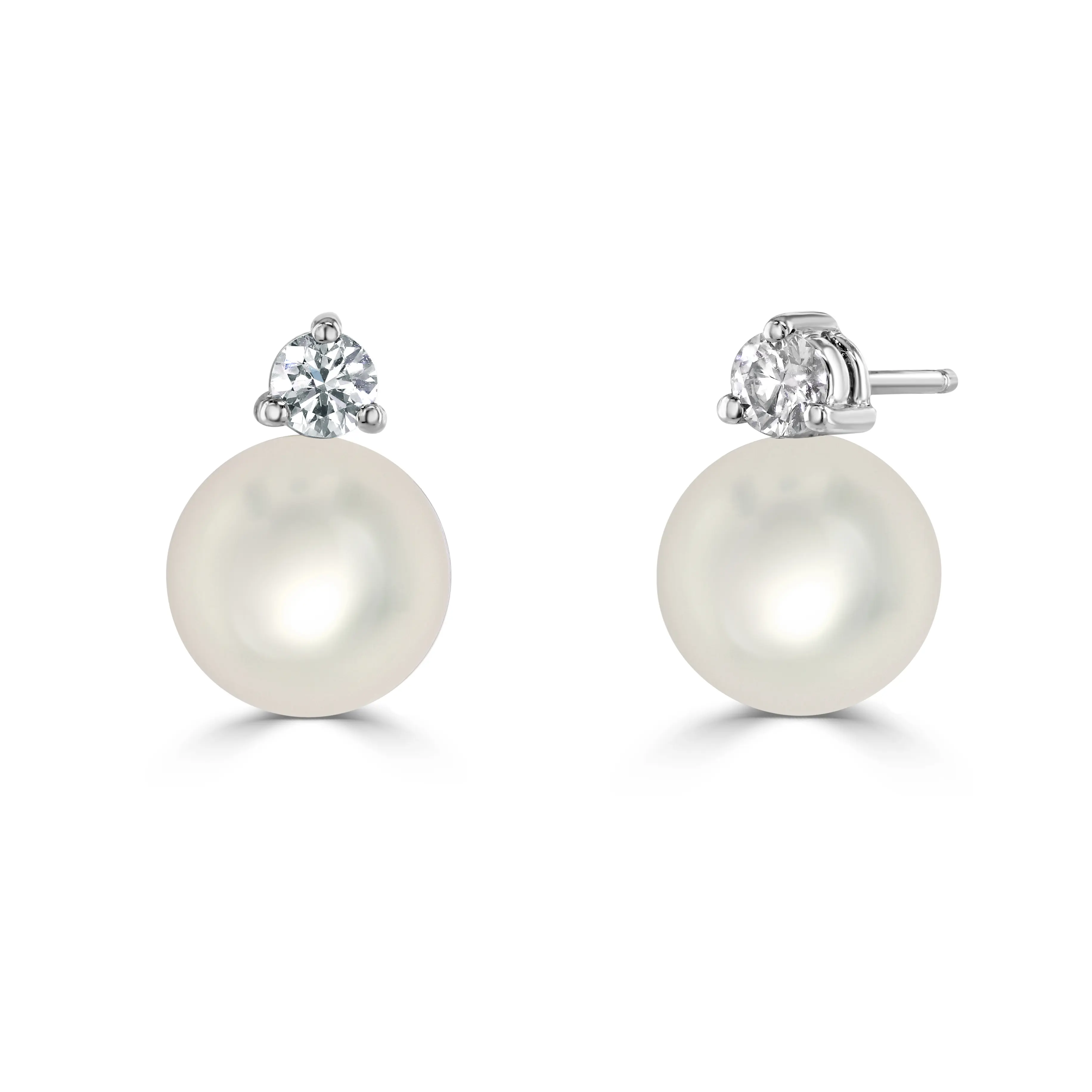Indulge in timeless elegance with these luxury stud earrings, masterfully crafted in 18ct white gold. Each piece showcases a round brilliant cut diamond, set in a refined 3-claw mount, radiating sparkle and sophistication. Suspended beneath is a magnificent South Sea cultured pearl, prized for its exceptional size and luminous beauty, measuring 10.0–11.0mm. With a total diamond weight of 0.40ct, these earrings are the ultimate expression of grace and refinement—perfect for those who appreciate understated luxury.