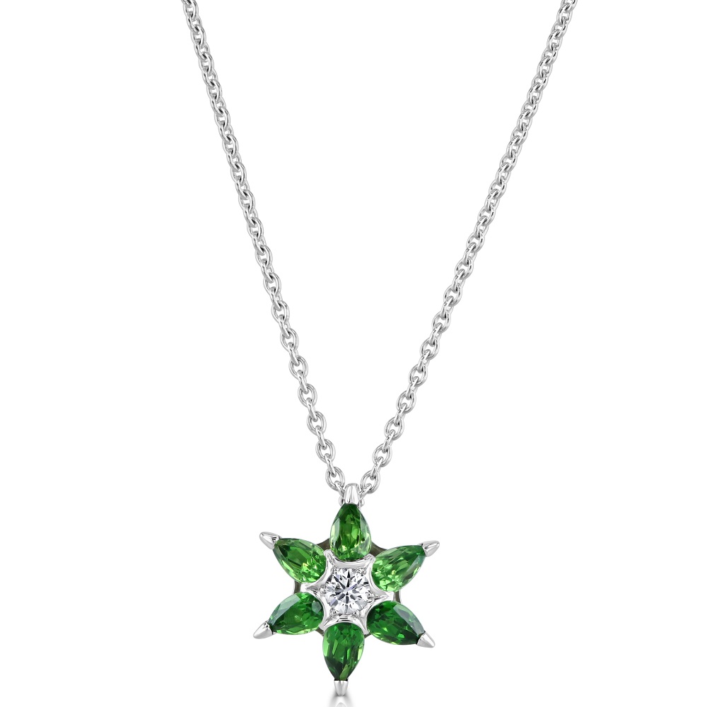 18ct White Gold Tsavorite and Diamond Flower Pendant
