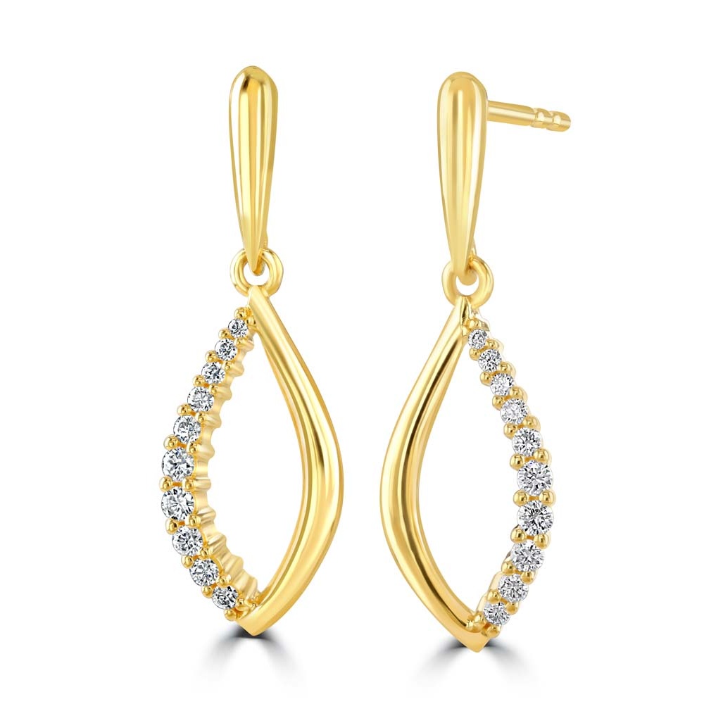 Enhance your elegance with these stunning 18ct yellow gold drop stud earrings. Each earring features a marquise shape, half set with ten graduated round brilliant-cut diamonds in small claw settings. The graduated diamonds create a beautiful gradient of sparkle, adding a touch of sophistication to the design. Designed with post and butterfly fittings, these earrings ensure a secure and comfortable fit. With a total diamond weight of 0.18ct and diamonds of H colour and SI clarity, these earrings combine modern design with timeless luxury. Perfect for special occasions or everyday wear, they will add a touch of refined elegance to any ensemble.