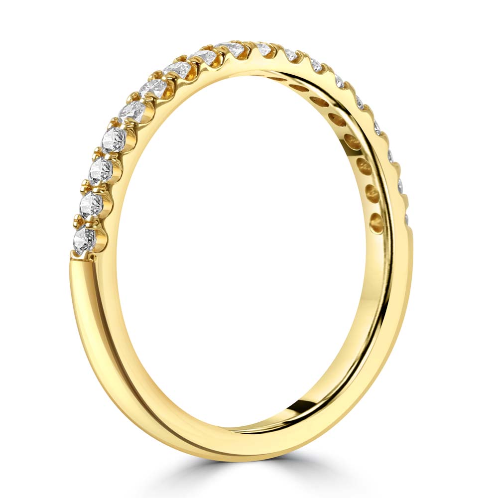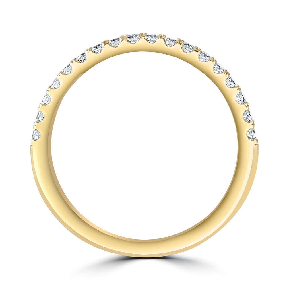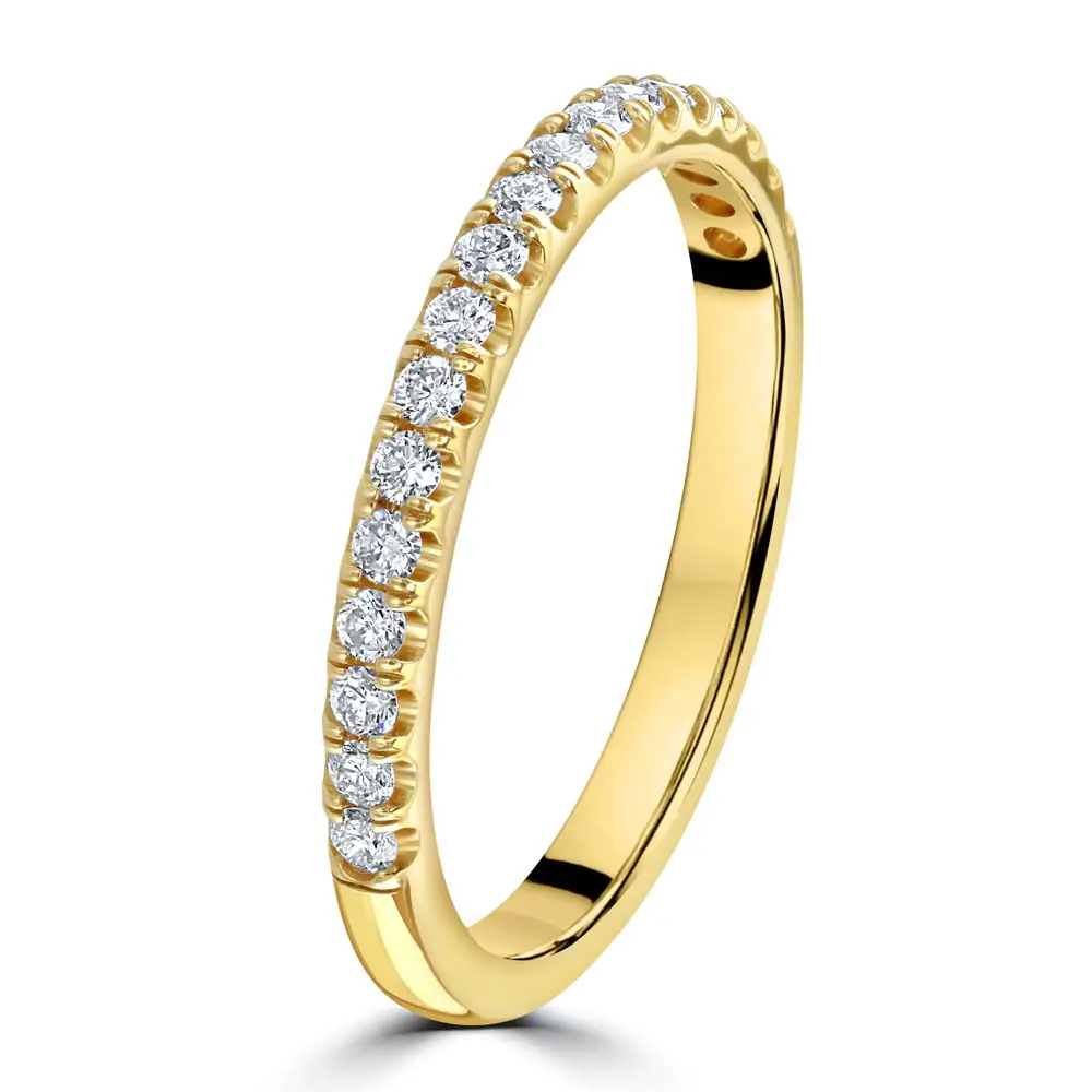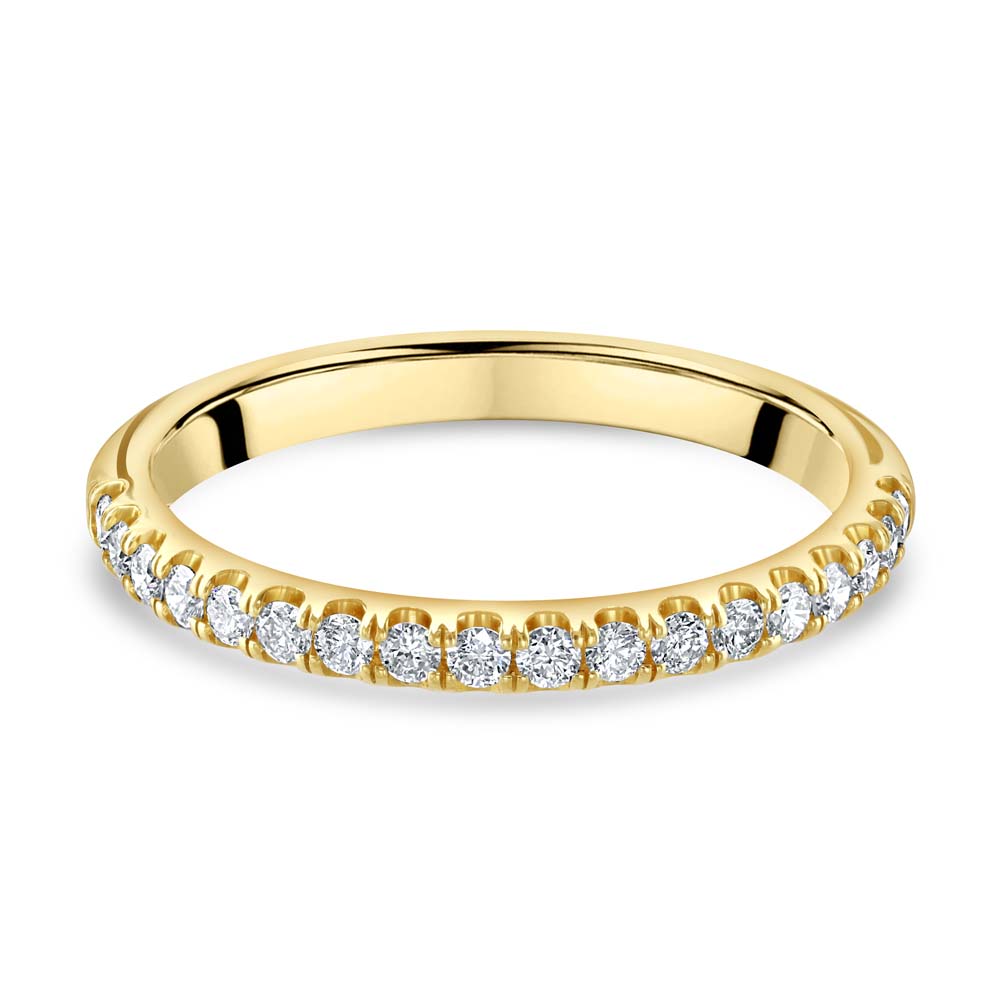 A timeless expression of elegance, this half eternity ring is beautifully crafted in 18ct yellow gold and adorned with 18 round brilliant-cut diamonds, each delicately secured in a split four-claw setting. The softened court band offers a graceful profile and exceptional comfort, making it perfect for everyday wear or as a symbol of everlasting love. With a total diamond weight of 0.25ct, these gemstones are graded G colour and SI clarity, ensuring a captivating sparkle and refined sophistication. Ideal as a wedding band, anniversary gift, or a luxurious stacking piece, this ring embodies understated glamour and enduring beauty.