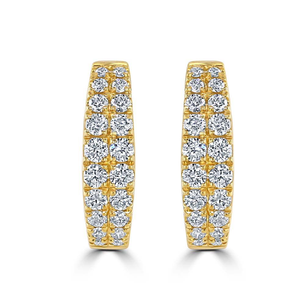 Add a touch of refined brilliance to your jewellery collection with these stunning 18ct yellow gold oval hinged hoop earrings, expertly crafted to showcase timeless elegance and modern sophistication. Each hoop features two rows of ten round brilliant cut diamonds, beautifully graduating to the centre for a captivating sparkle and balanced design. With a total diamond weight of 0.35cts, these earrings offer understated luxury, perfect for both everyday wear and special occasions. The hinged hoop design ensures a secure and comfortable fit, making them a versatile addition to any fine jewellery collection.