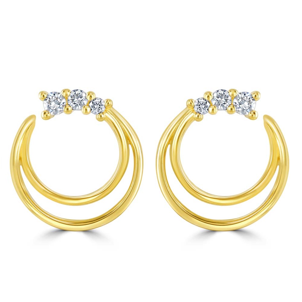 Add a touch of sophistication to your jewellery collection with these stunning 18ct yellow gold stud earrings. Featuring a unique double-stranded twisted crescent shape, each earring is adorned with three graduated round brilliant-cut diamonds, claw set at the top. The total diamond weight for both earrings is 0.12ct, offering a delicate yet captivating sparkle. The warm, rich hue of the yellow gold beautifully complements the radiant diamonds, creating a timeless and elegant look. The post and butterfly fittings ensure a secure and comfortable fit, making these earrings perfect for both everyday wear and special occasions. Whether you're dressing up for a formal event or adding a touch of luxury to your daily attire, these earrings are the perfect accessory to enhance any outfit.