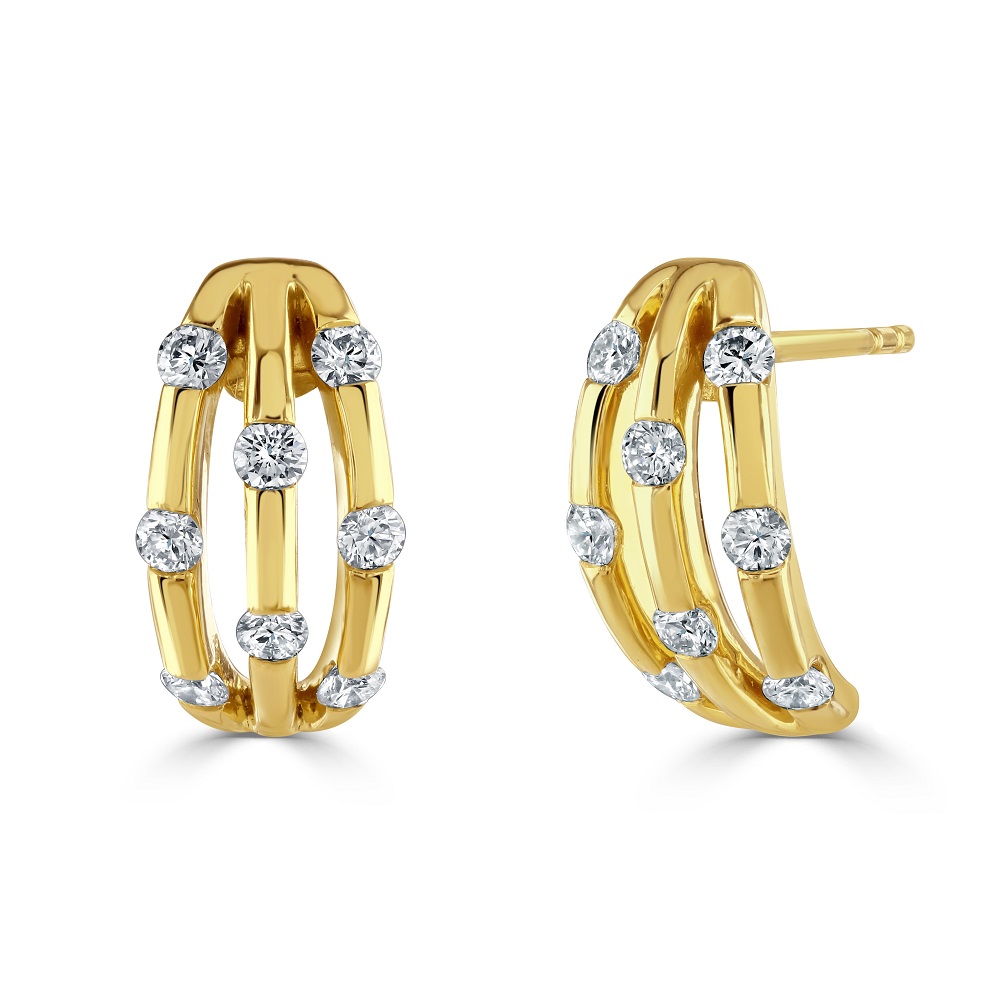 A striking pair of 18ct yellow gold drop stud earrings featuring three strands of gold set with eight sparkling round brilliant cut diamonds. These beautiful earrings have post and butterfly fittings for pierced ears. Other variations are available please contact the store for more details.