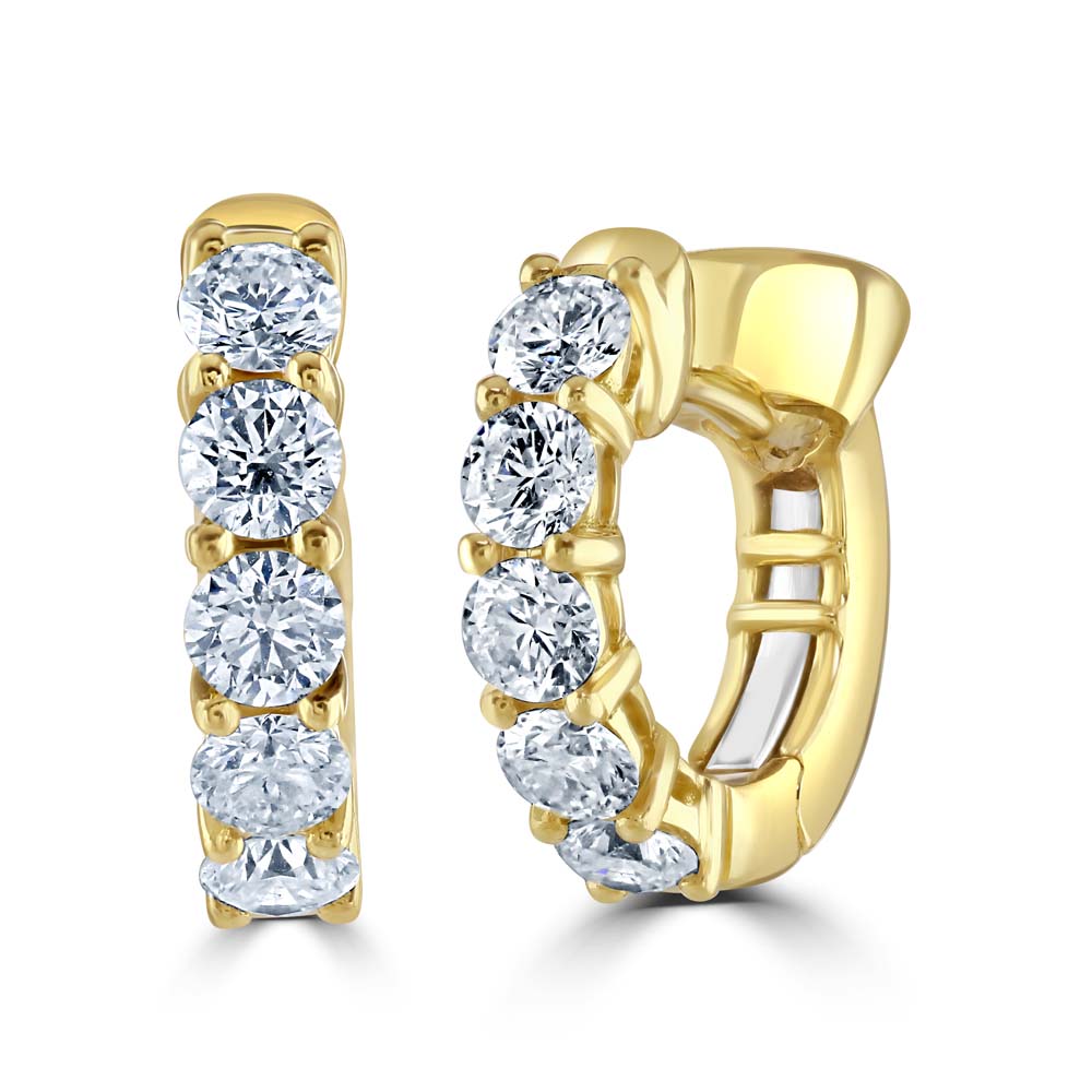 A classic pair of 18ct yellow gold earrings each set with five sparkling round brilliant cut diamonds. These elegant earrings are designed for pierced ears. Other sizes and variations are available, please contact the store for more details.
