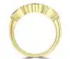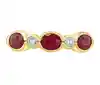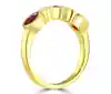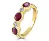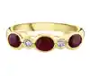 An exquisite 18ct yellow gold half eternity ring, a perfect blend of timeless elegance and modern design. This beautifully crafted ring features alternating oval rubies and round brilliant-cut diamonds, all seamlessly rubover set to create a sleek and sophisticated profile. The three oval rubies, with a total weight of 1.17 carats, display a rich, vibrant red that exudes warmth and passion. Complementing these are two round brilliant-cut diamonds, totalling 0.11 carats, which add a subtle yet captivating sparkle to the design. The ring’s smooth, contoured edges and the luxurious yellow gold setting make it comfortable for everyday wear while maintaining an air of classic refinement. Ideal for an anniversary, special occasion, or as a cherished addition to any fine jewellery collection, this half eternity ring is a stunning symbol of enduring beauty.