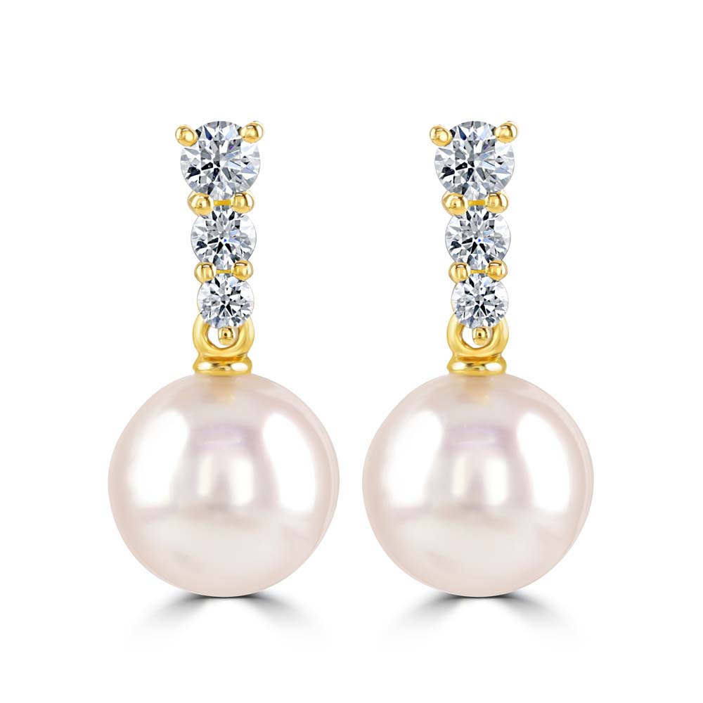 18ct White Gold Akoya Cultured Pearl & Diamond Drop Morning Dew Earrings