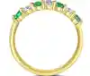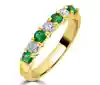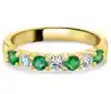 A classic 18ct yellow gold half eternity ring, a masterpiece of craftsmanship and beauty. This exquisite ring features a captivating pattern of alternating four round emeralds and three round brilliant cut diamonds, creating a harmonious balance of colour and sparkle. The total emerald weight of 0.38ct brings a vibrant burst of lush green, symbolizing renewal, and growth, while the diamonds, totalling 0.28ct, add a timeless shimmer that complements the emeralds' radiance perfectly. Each gemstone is securely held in place by four claws, ensuring their brilliance is displayed to its fullest. Crafted in rich 18ct yellow gold, this ring offers a warm and luxurious setting that enhances the natural beauty of the emeralds and the dazzling light of the diamonds. Perfect for those who appreciate the elegance of gemstone jewellery, this half eternity ring is a stunning symbol of love and commitment, designed to be cherished for a lifetime.