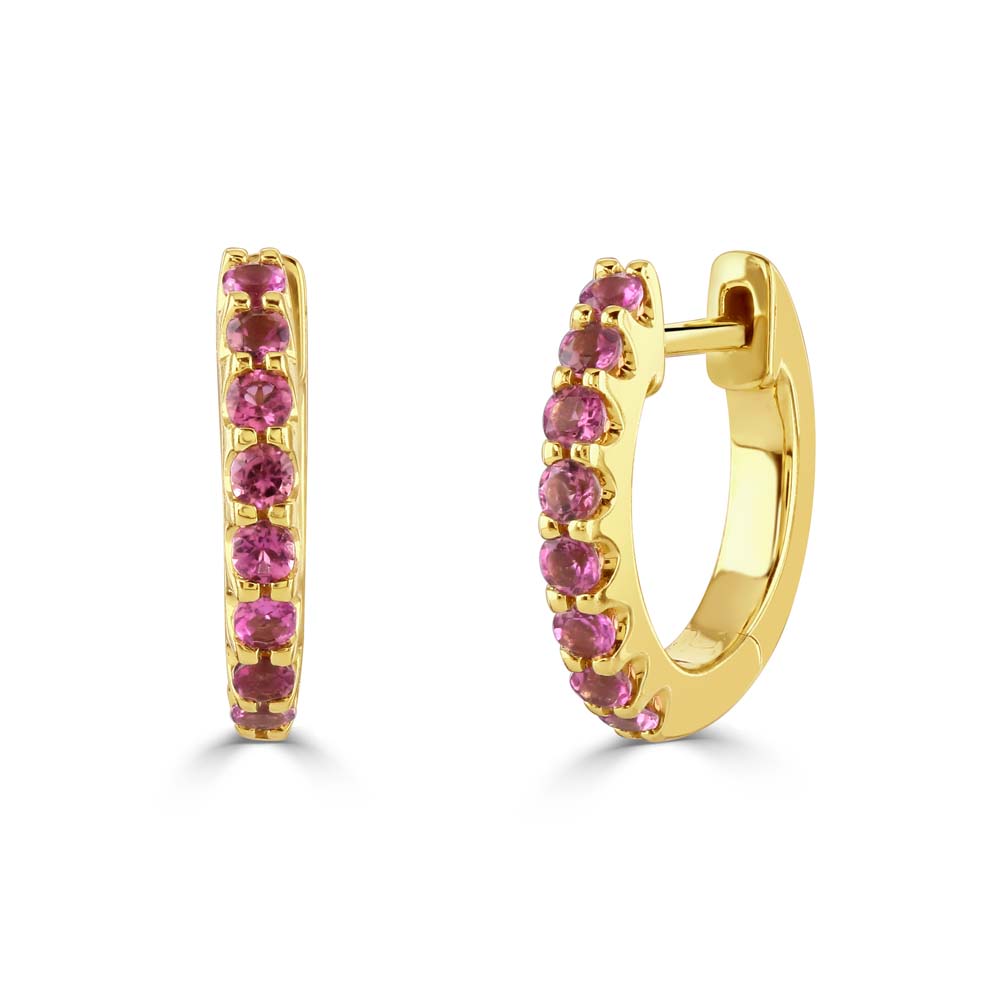 Discover the sheer beauty of our 18ct Yellow Gold Hinged Hoop Earrings, each featuring eight claw-set pink tourmalines. With a total pink tourmaline weight of 0.37ct, these earrings exude a delicate yet vibrant charm, making them a perfect accessory for any ensemble. The hinged hoop design ensures a comfortable and secure fit, ideal for daily wear or special occasions. Add a touch of feminine elegance to your jewellery wardrobe with these exquisite pink tourmaline hoop earrings set in luxurious yellow gold.