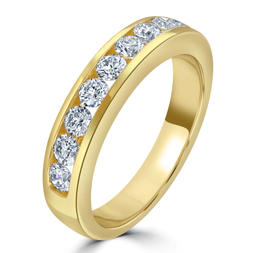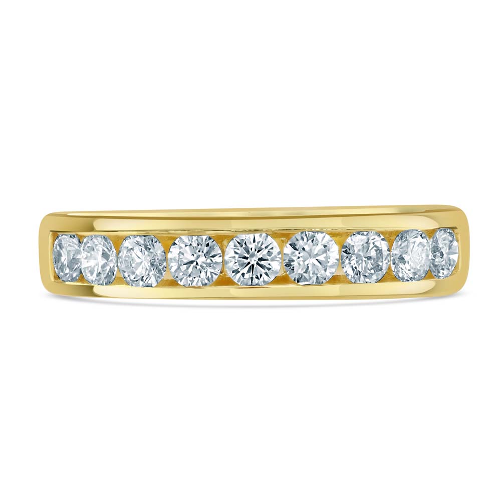 Introducing our elegant 18ct yellow gold eternity ring, a symbol of everlasting love and timeless style. This luxurious ring is channel set with nine round brilliant cut diamonds, collectively weighing 0.78 carats, ensuring a seamless expanse of sparkle and fire. The sleek channel setting not only protects each gem but also provides a smooth, refined finish that complements the rich warmth of the yellow gold. Perfect as an anniversary gift, a wedding band, or a sophisticated addition to any jewellery collection, this eternity ring is designed to celebrate lasting commitment with unparalleled grace and brilliance