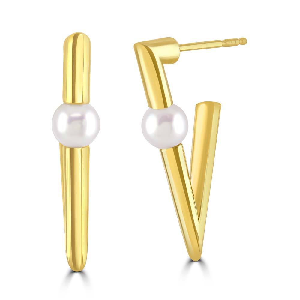 18ct Yellow Gold Akoya Cultured Pearl V Code Earrings