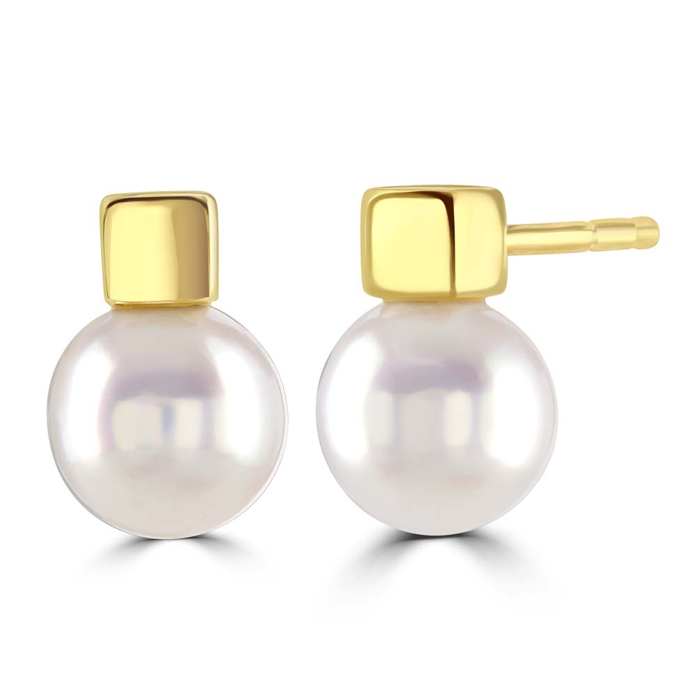 18ct Yellow Gold Akoya Cultured Pearl Cube Earrings