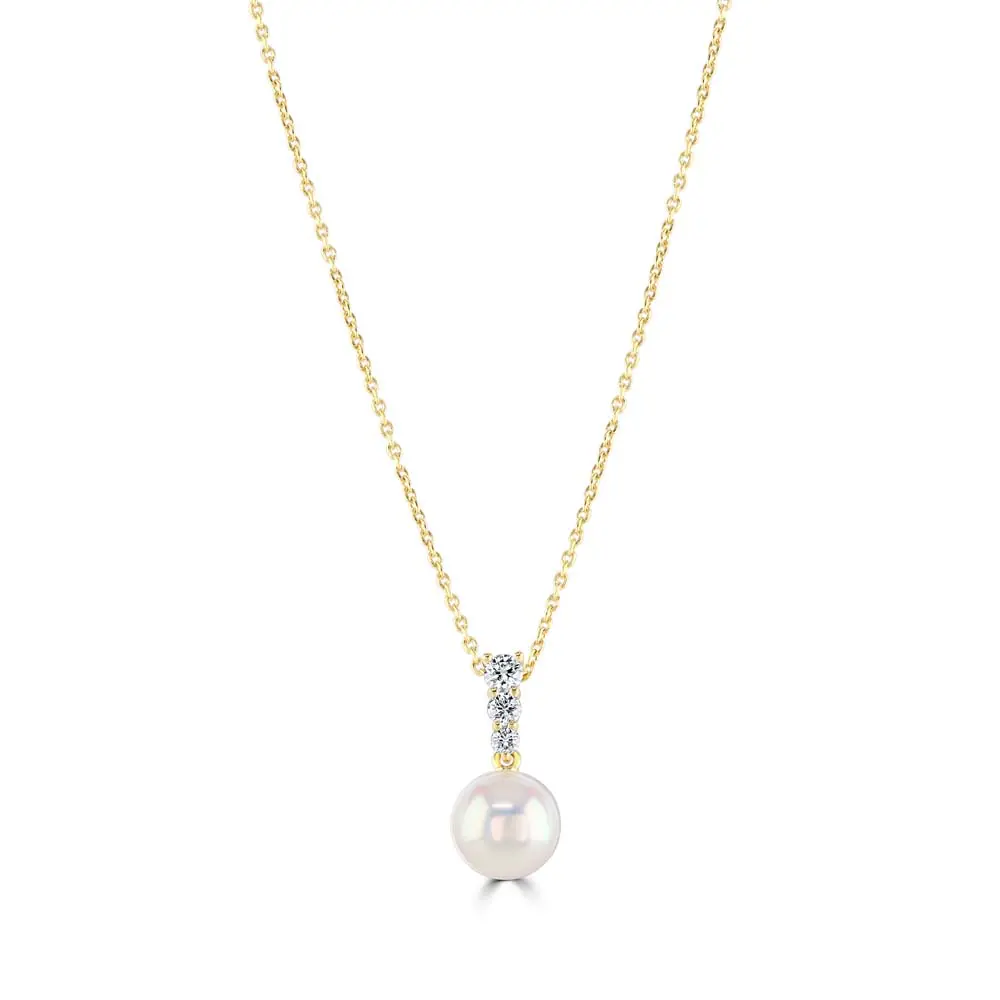 18ct Yellow Gold Akoya Cultured Pearl and Diamond Pendant