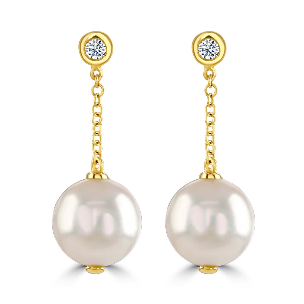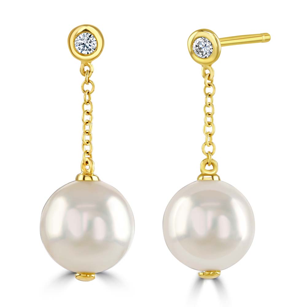18ct Yellow Gold Akoya Cultured Pearl and Diamond Drop Earrings
