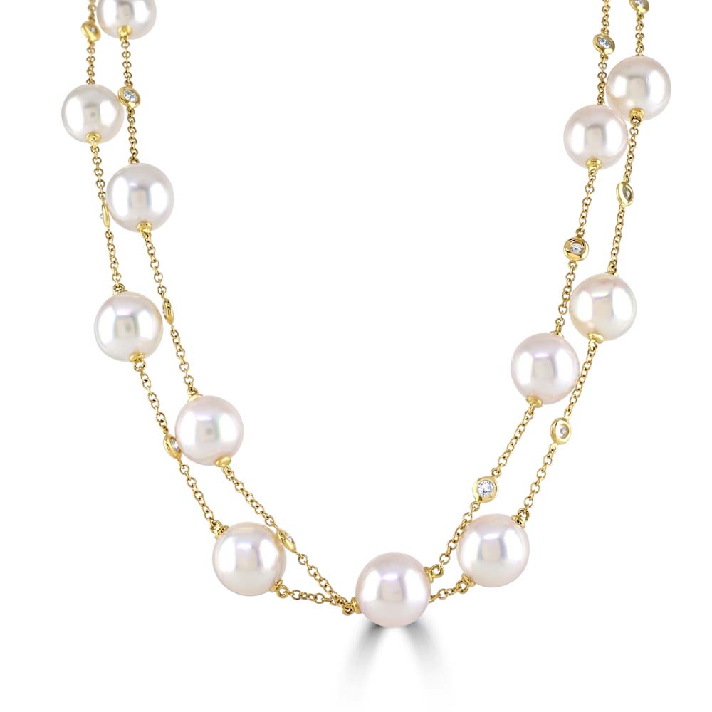 18ct Yellow Gold Akoya Cultured Pearl and Diamond Necklace