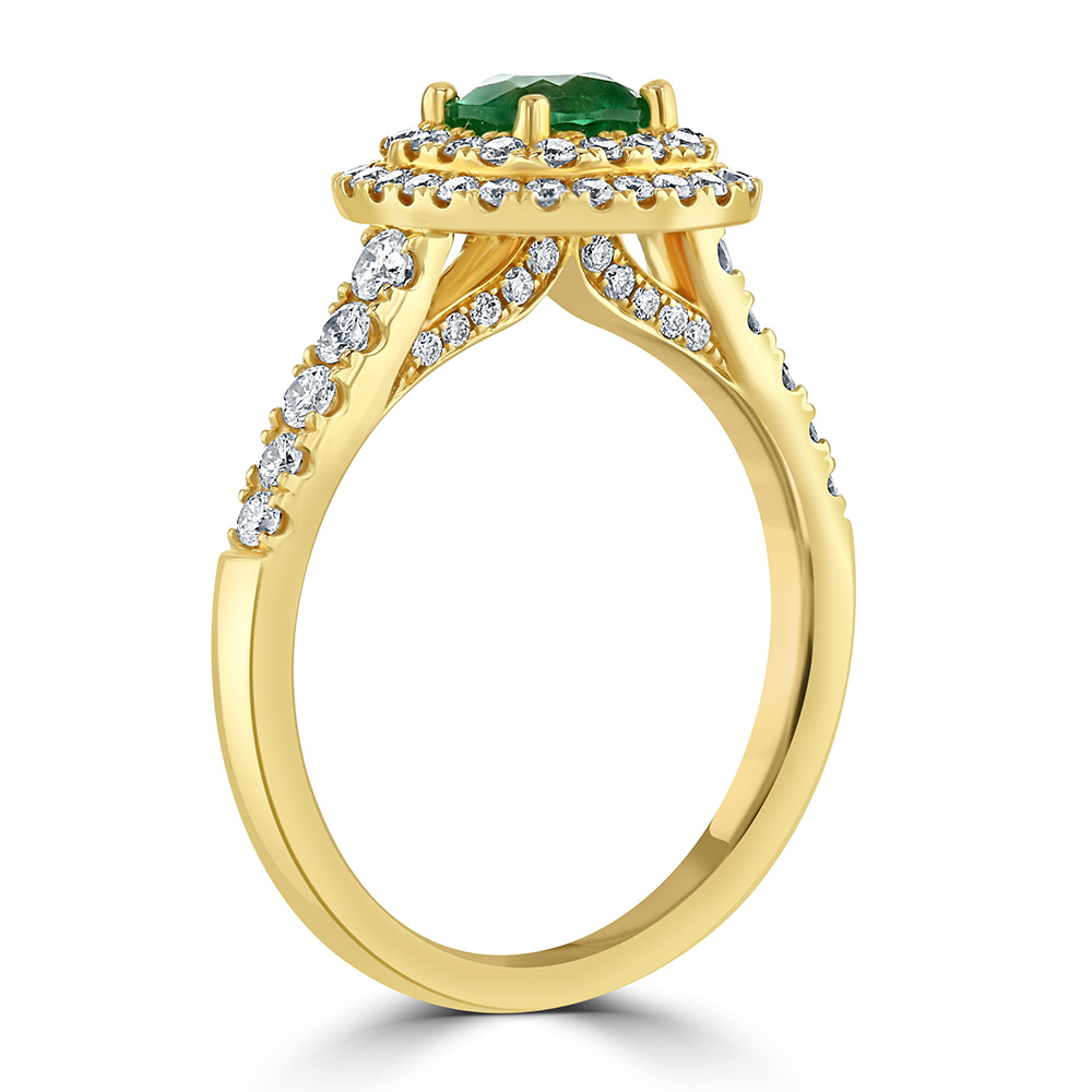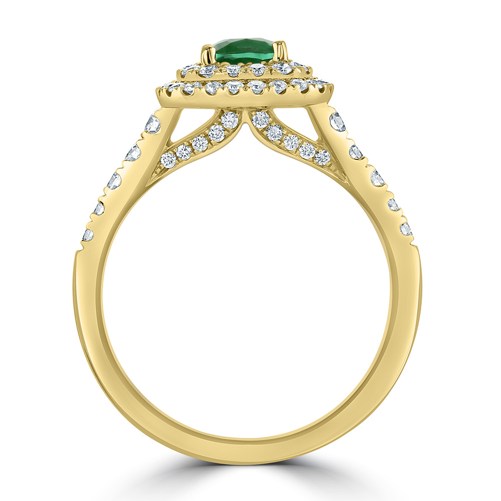 18ct Yellow Gold Emerald and Diamond Halo Ring