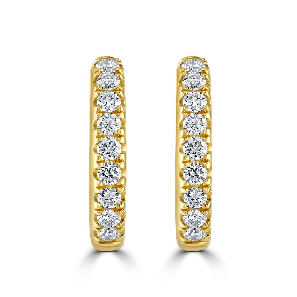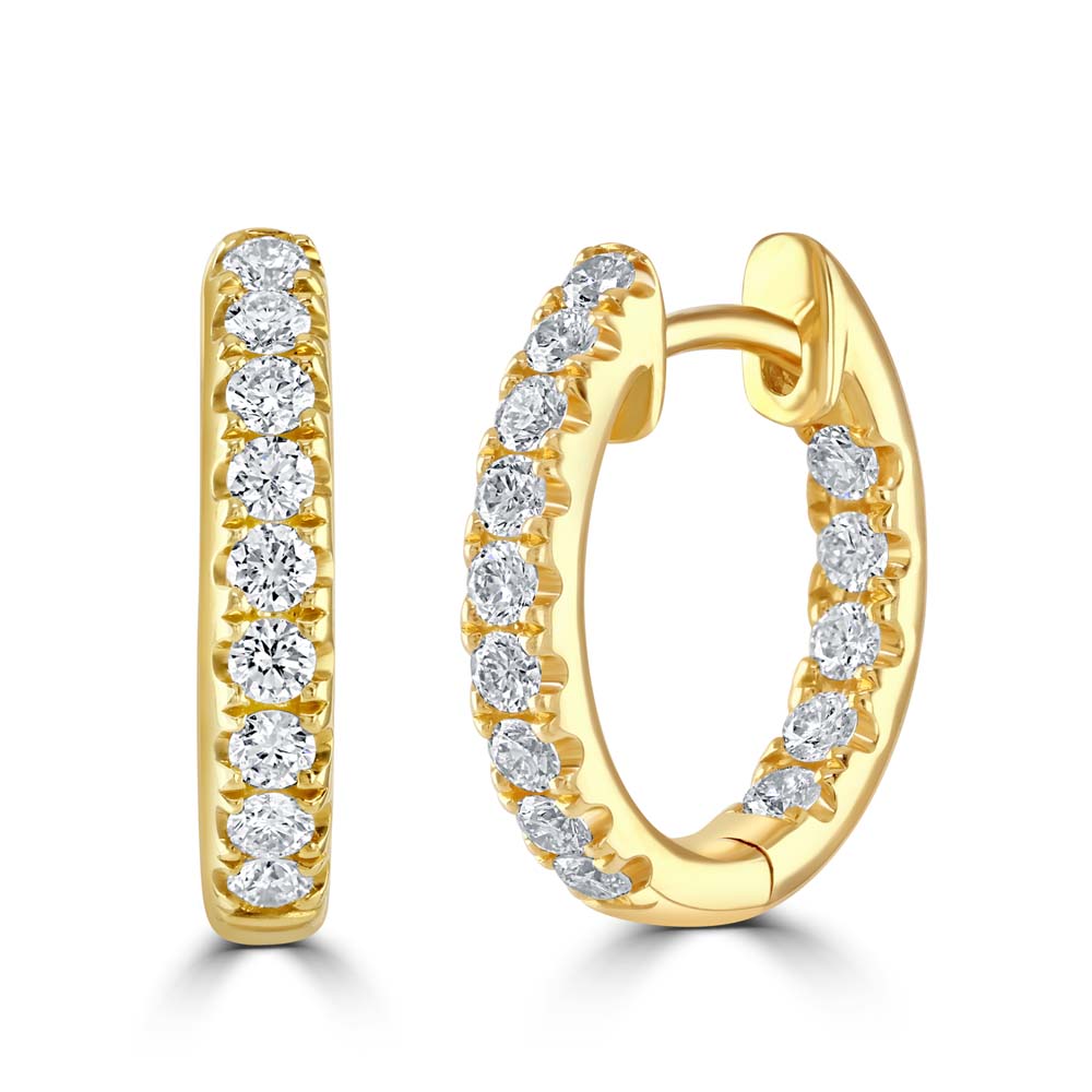 Add a touch of brilliance to your everyday style with these elegant 18ct yellow gold hinged hoop earrings. Featuring nine round brilliant-cut diamonds on the front and five on the inside back, these inside-out hoops sparkle from every angle. With a total diamond weight of 0.56ct, this design combines timeless sophistication with modern flair. Perfect for day-to-night wear, these hoops offer exceptional sparkle and a luxurious finish, making them an essential addition to any jewellery collection.