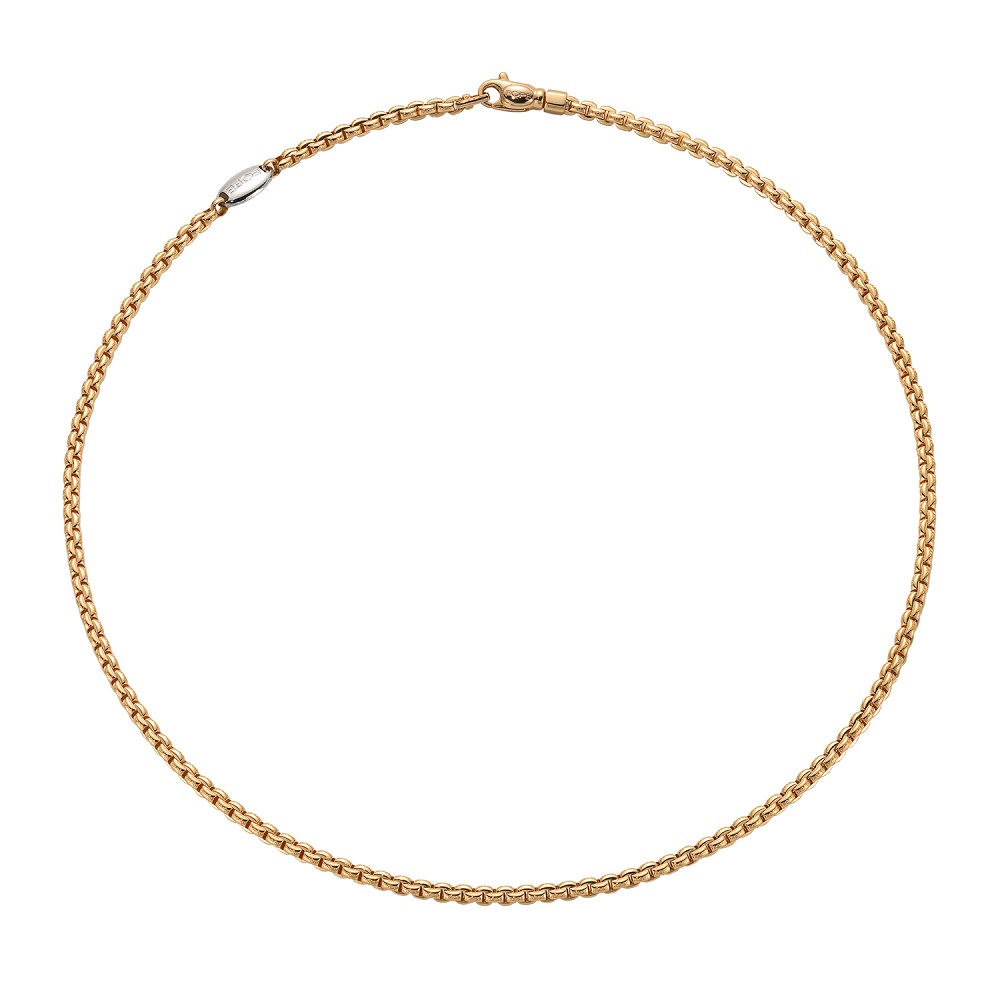 Step into a world of Italian luxury with our 18ct yellow gold Flex'It Eka necklace by Fope Gioielli. This exquisite necklace is crafted from the finest 18ct yellow gold, featuring unique brick-style links that offer a modern twist on a classic design. Measuring 57cm in length, this necklet sits perfectly between the collarbone and bust, providing a sophisticated and flattering look that's perfect for any occasion. The Flex'It design allows for exceptional comfort and flexibility, gracefully conforming to the contours of your neck. Elegant and versatile, this piece is ideal for those who appreciate contemporary design mixed with traditional elegance. Add this stunning piece to your collection to showcase your refined taste and style