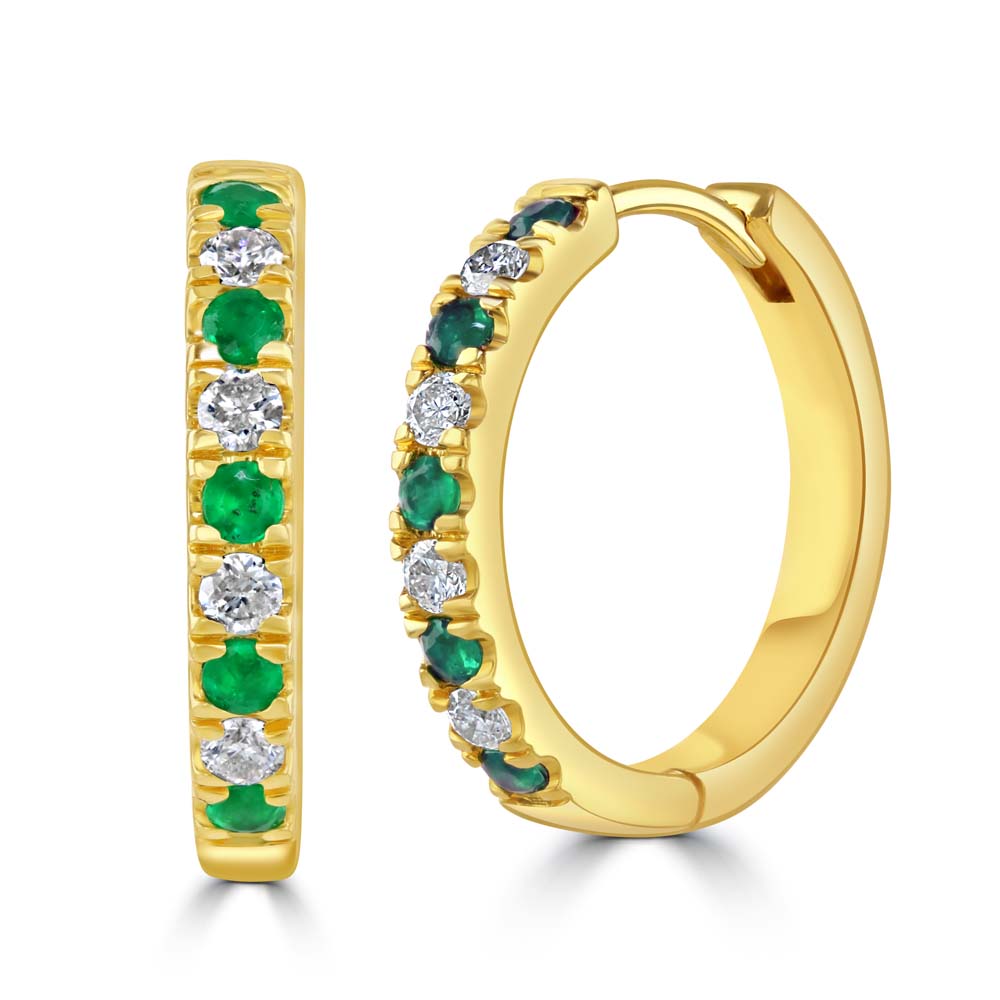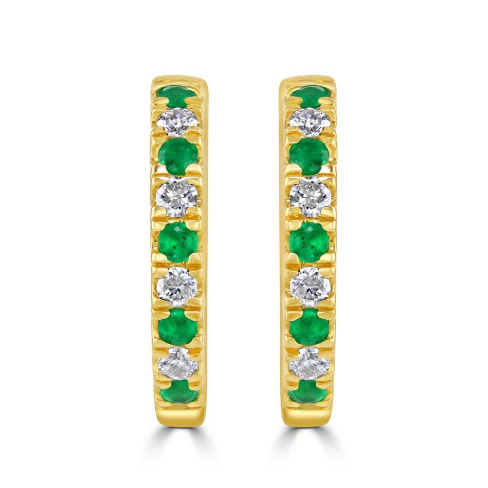 Introducing our stunning 18ct yellow gold hinged hoop earrings, an elegant blend of luxury and timeless design. These exquisite hoops are expertly set with alternating five lustrous round emeralds and four sparkling round brilliant cut diamonds, creating a captivating pattern of green and clear gems. The emeralds collectively weigh 0.30ct, offering a vibrant pop of colour, while the diamonds total 0.25ct, providing a dazzling contrast with their brilliant sparkle. Crafted with a secure hinged closure for easy wear, these earrings are perfect for adding a sophisticated touch of glamour to both day and evening looks. Ideal for those who appreciate the beauty of fine gemstones and the classic allure of yellow gold, these earrings are sure to be a cherished addition to any jewellery collection.