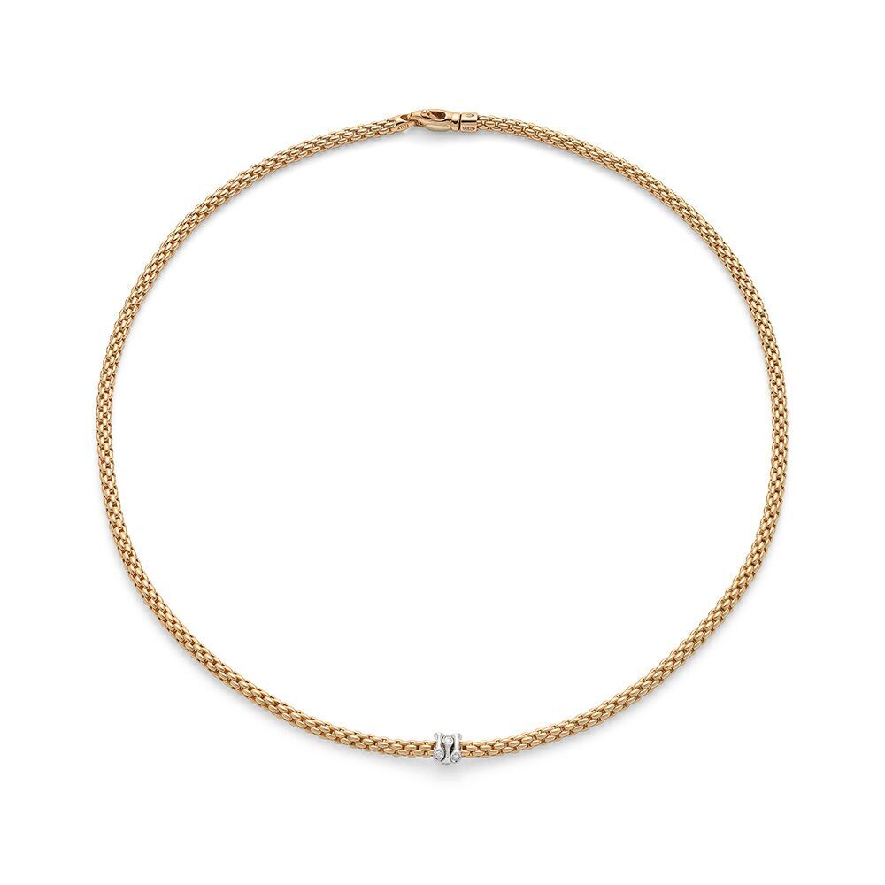 The soft and flexible weave of the gold round Novecento mesh is in a light and relaxed form within the Prima collection. Prima bracelets, rings, necklaces and earrings can be worn on their own or matched with more important pieces from other collections. A masterpiece of jewellery making and engineering at the same time, Flex’it is a patented system for producing jewellery that is entirely and uniquely flexible, comfortable and easy to wear, in 18-carat gold. Flex’it is the brand’s signature: if FOPE jewellery is known the world over, it is because of the mesh that is made flexible by a patented system of tiny 18-carat gold springs, which create original styles and fits.
