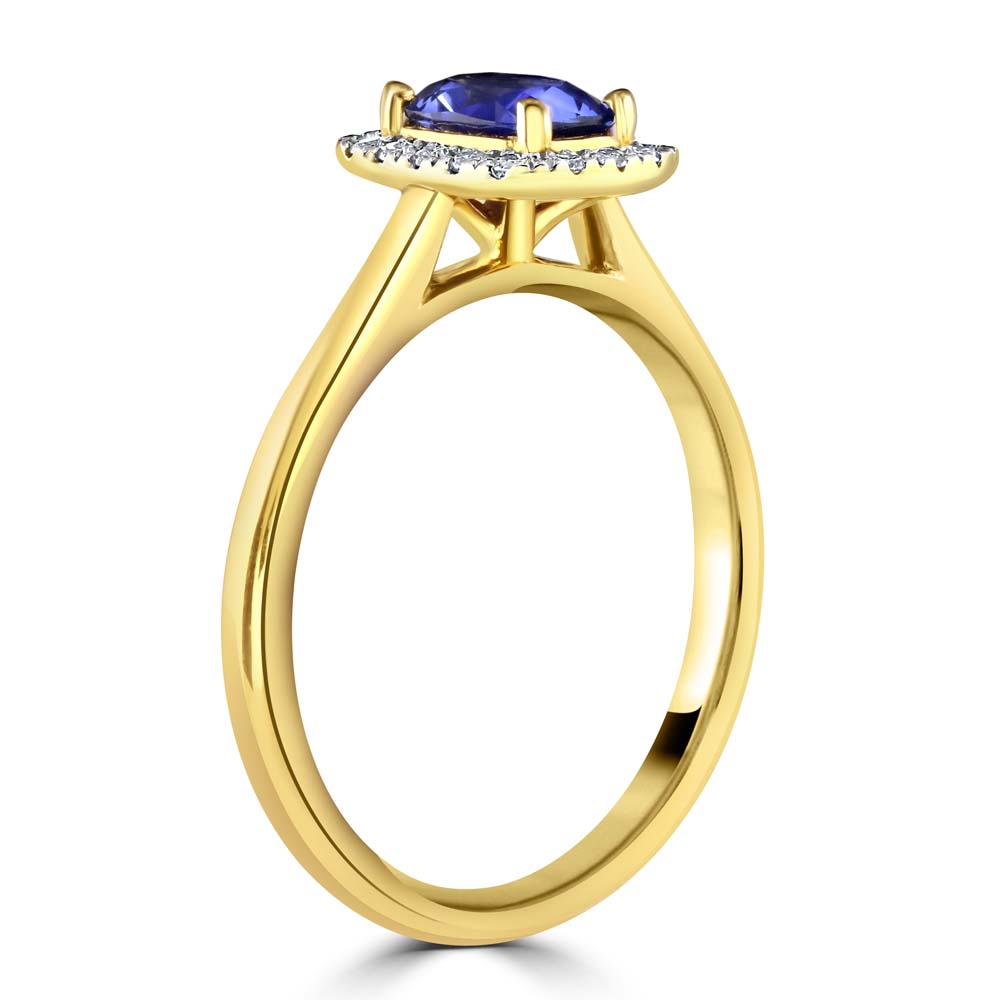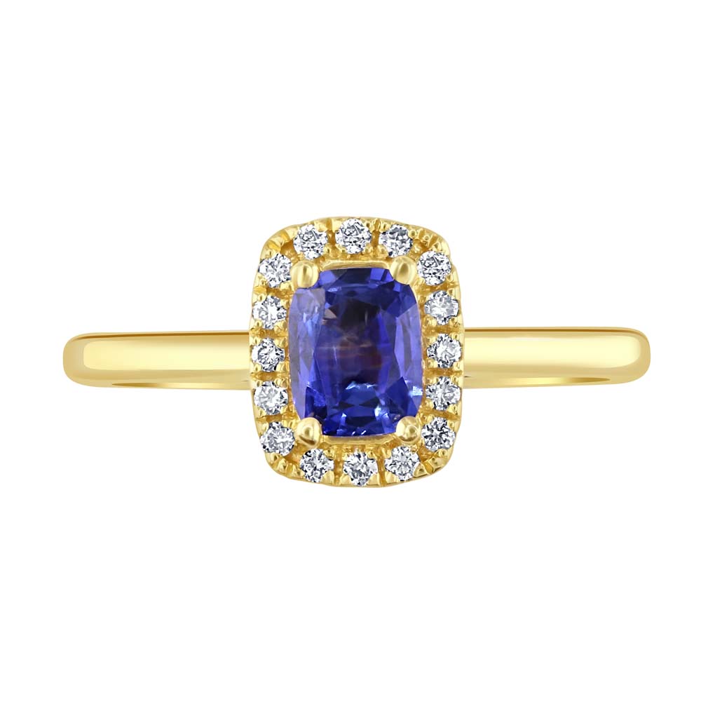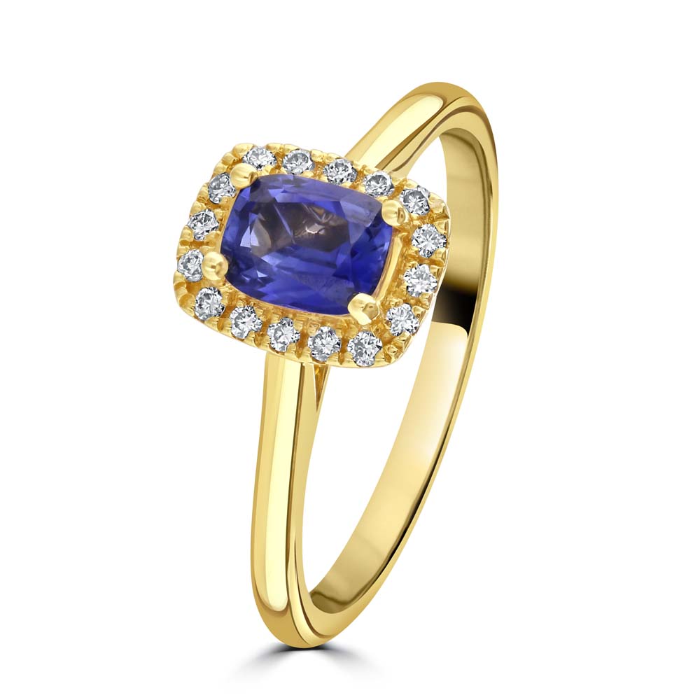 18ct Yellow Gold Sapphire and Diamond Halo Ring