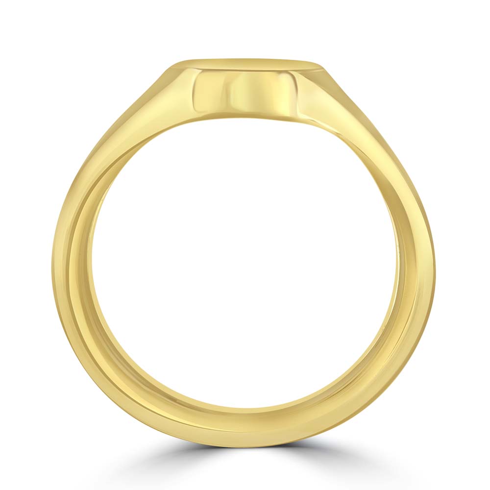 An 18ct yellow gold plain cushion shaped signet ring, a symbol of refined taste and personal heritage. This exquisite piece is perfectly designed for seal engraving, allowing you to customize it with your family crest or initials, making it a profound expression of your identity and legacy. Crafted from luxurious 18ct yellow gold, this signet ring features a sleek, cushion-shaped face that provides a canvas for personalization while maintaining a classic and sophisticated profile. Ideal for those who appreciate the significance of heritage and the importance of individuality, this ring is not just a piece of jewellery, but a personal emblem that can be treasured for generations.